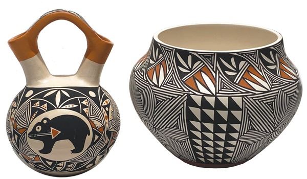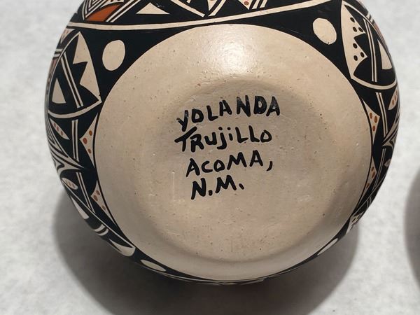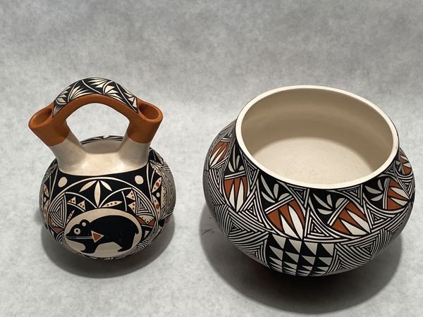 Late 1900s 7" x 5-1/2" Includes a small wedding vase with heart line bear by Yolanda Trujillo, plus a jar by L. Antonio. Very good condition.