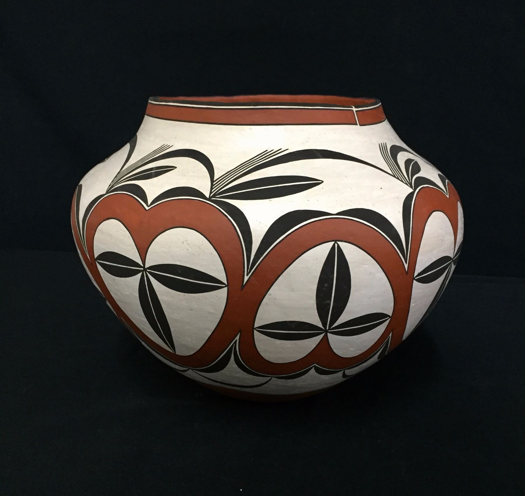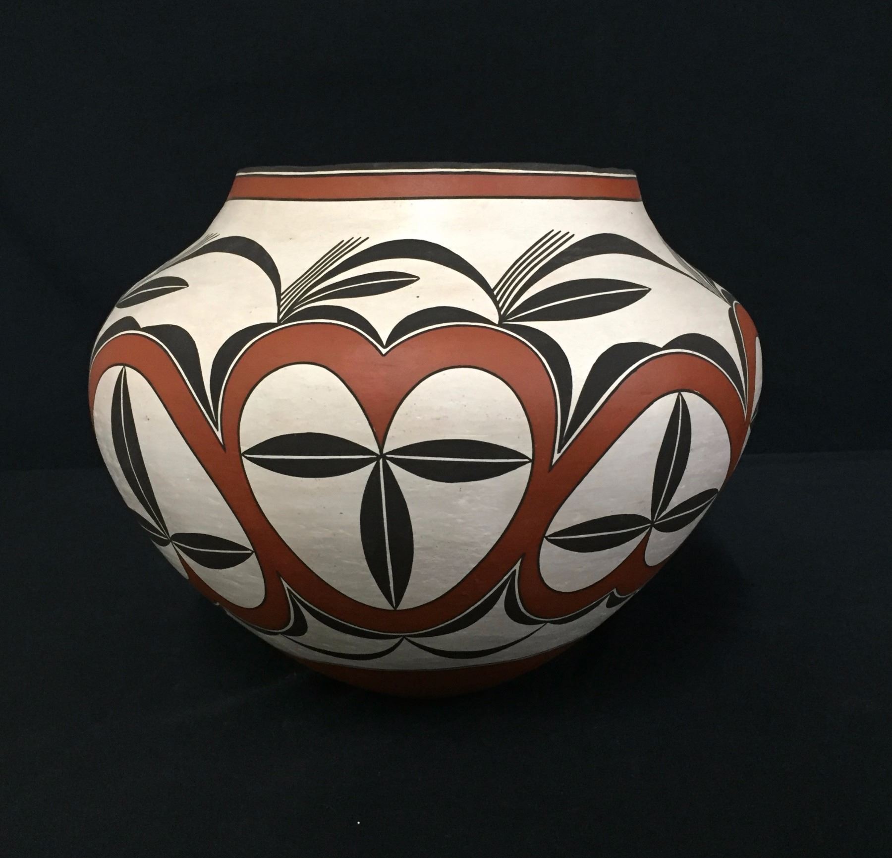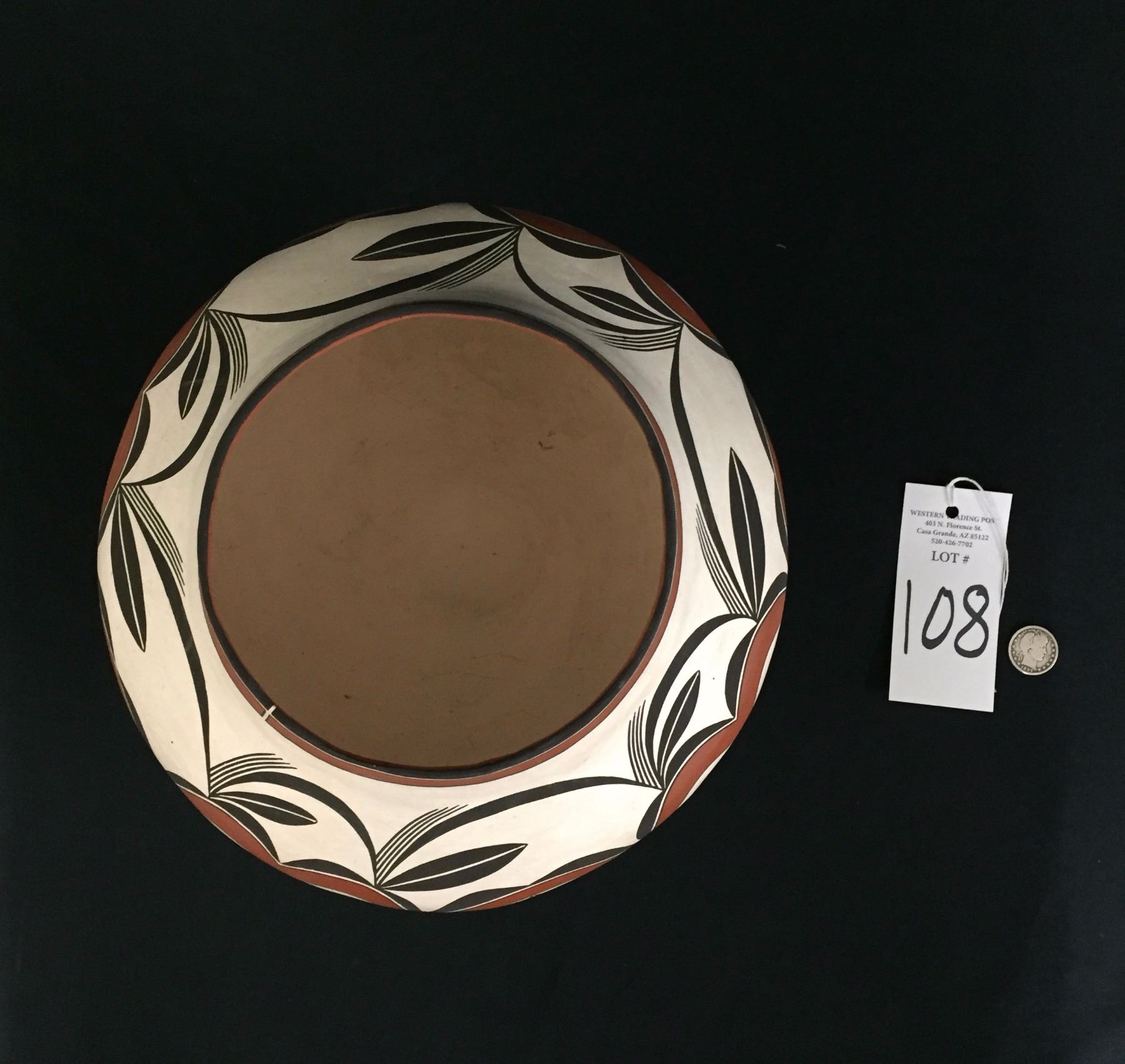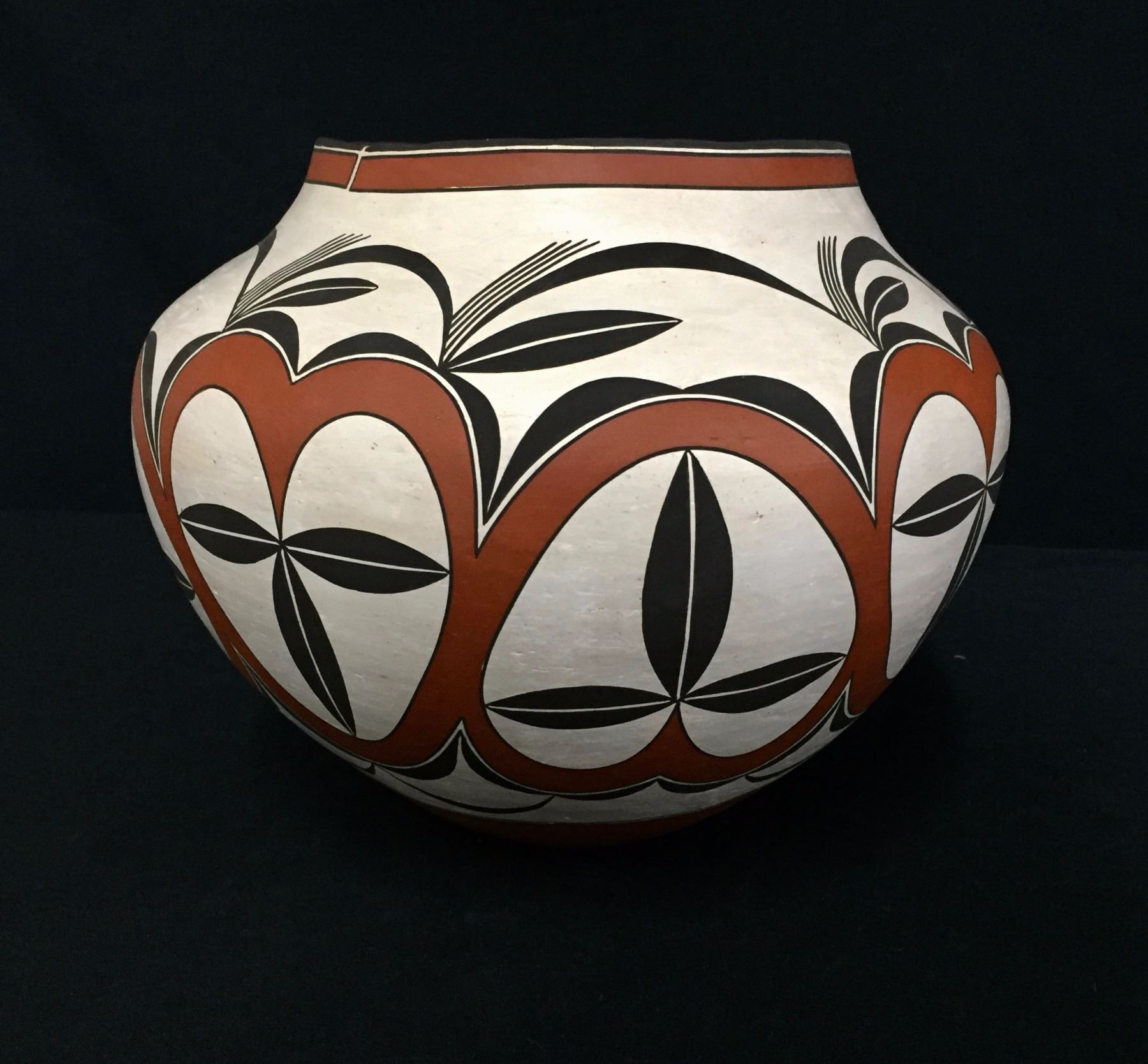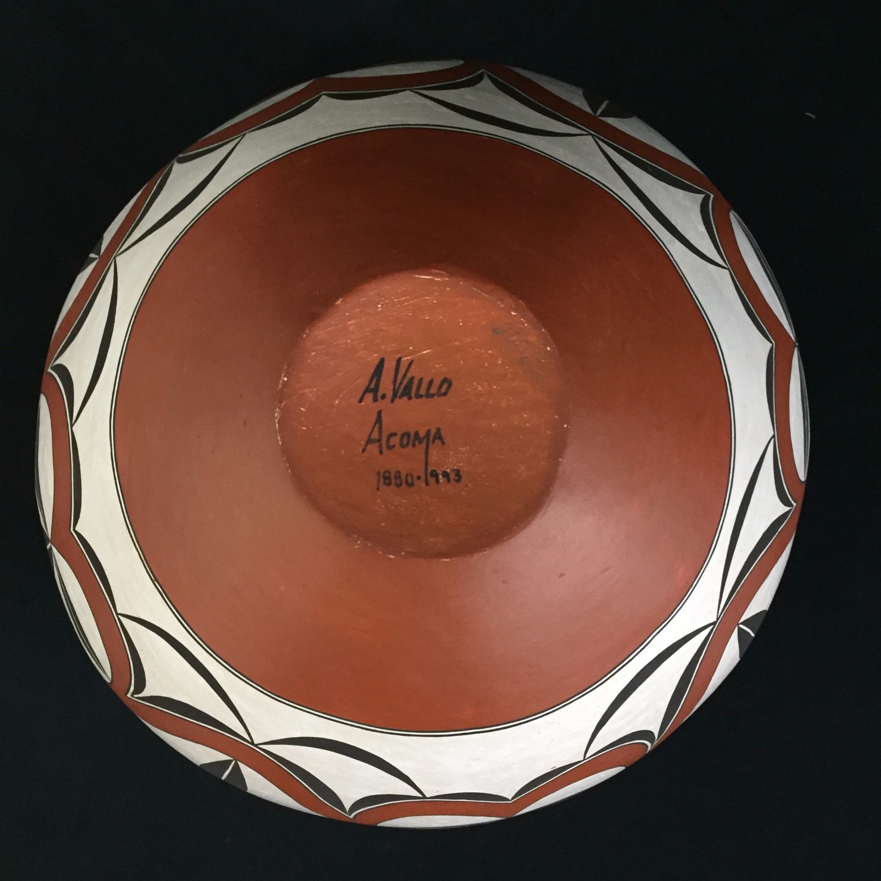 Maker: Adrian Vallo, Acoma. Approx. Age: 1993. Size: Measures 10 1/2” w x 8 1/2” tall. Additional Info: A handmade Acoma pot with a design from 1880 (noted on the bottom). Condition: Good for it’s age. Please look closely at the pictures - they are an important part of our description. Shipping: There will be a $10 handling / packaging fee for shipping this lot. The actual cost of postage will be added on top of that.