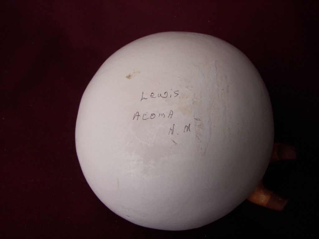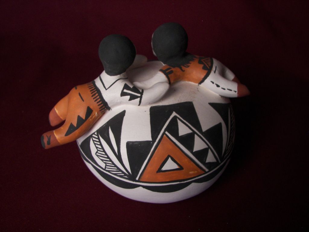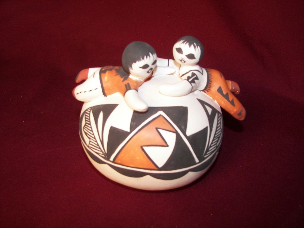 (7714) Acoma Pottery Piece, Signed Lewis, Acoma, N M, Two Children Playing On A Large Ball, 5" Dia., Greenware