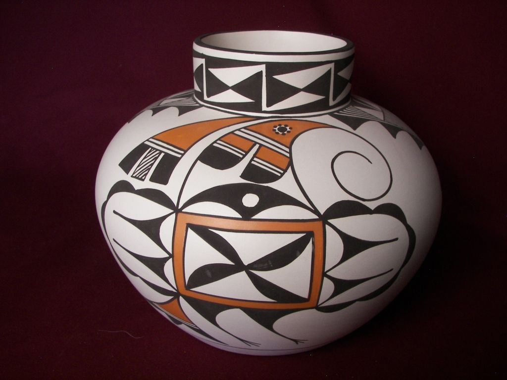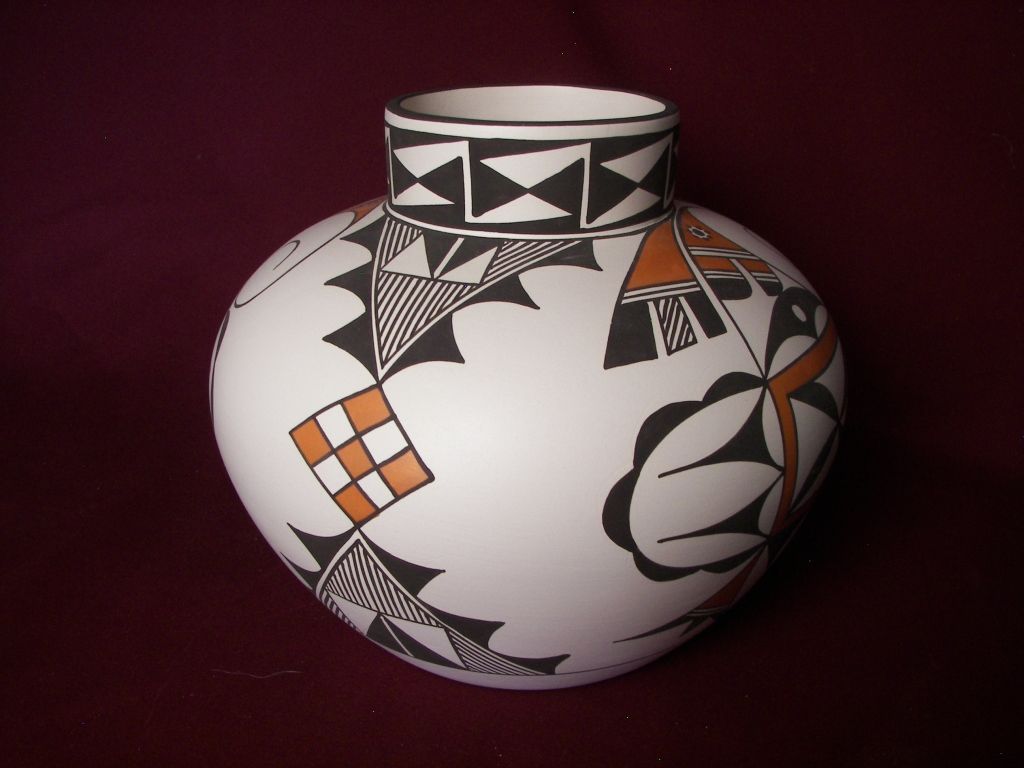 (7716) Acoma Pottery Jar, R. M Patricio, Polychrome Necked Jar 8" Dia. X 8" Tall,