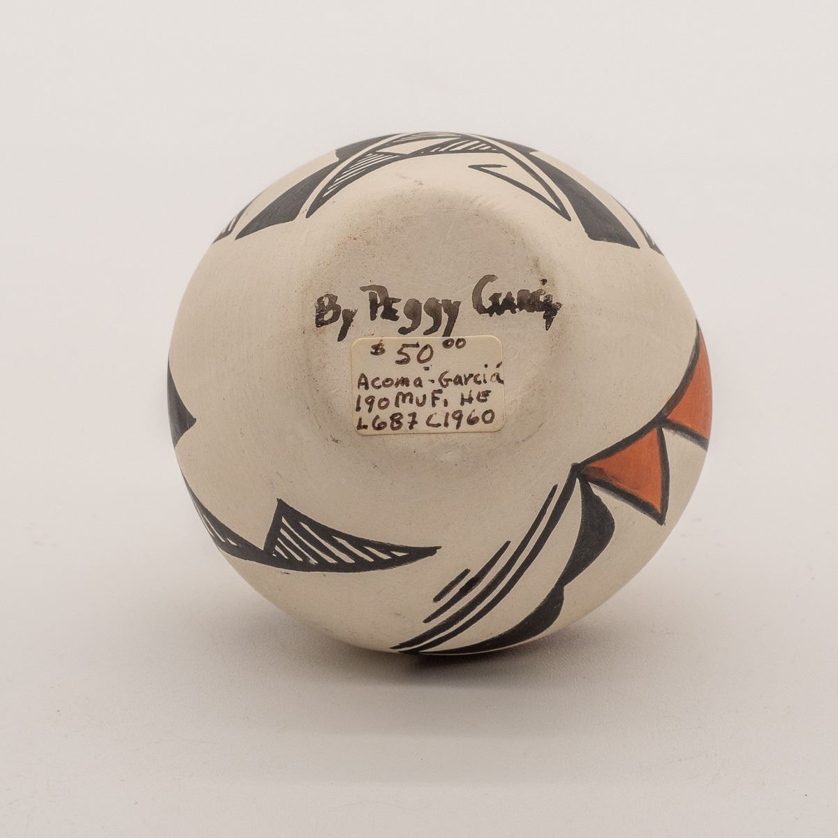 Native American Acoma Polychrome Pottery Jar by Peggy Garcia, measures 2.5'' x 3'' and is signed on the bottom, ca. 1960s