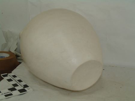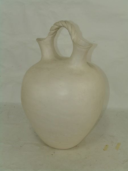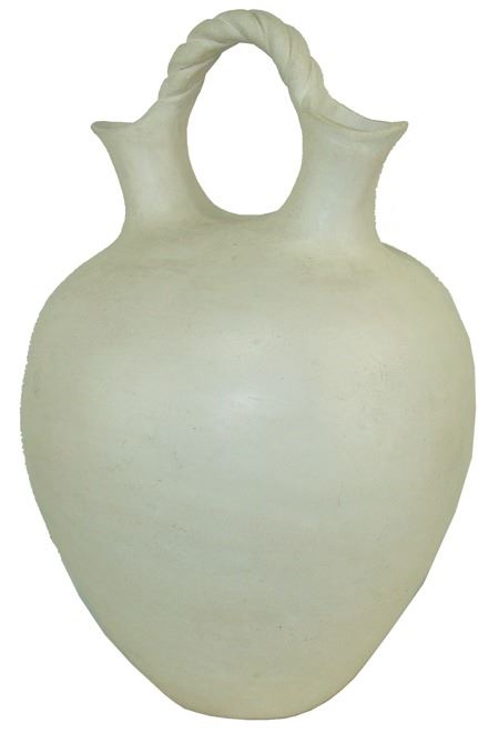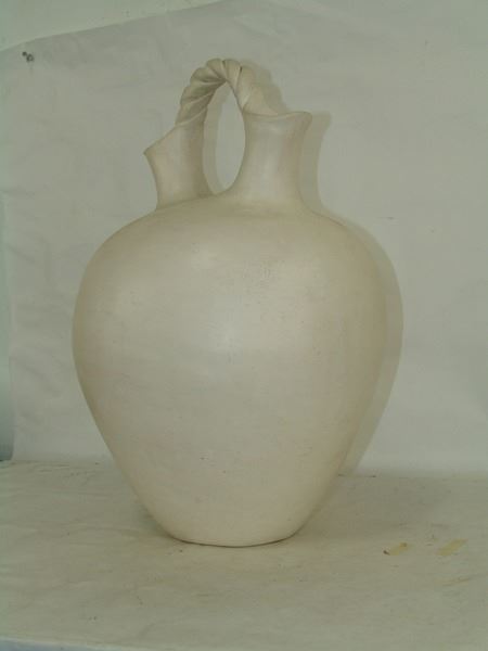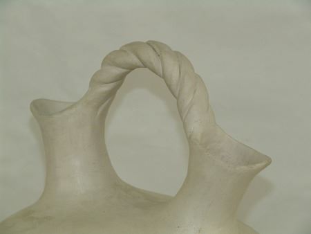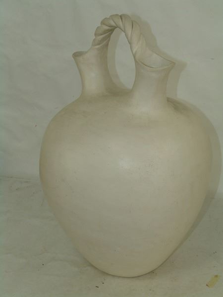 Mid 1900s, Huge unpainted coiled wedding jar with twist handle and double spouts. Very good condition. 18" x 13"