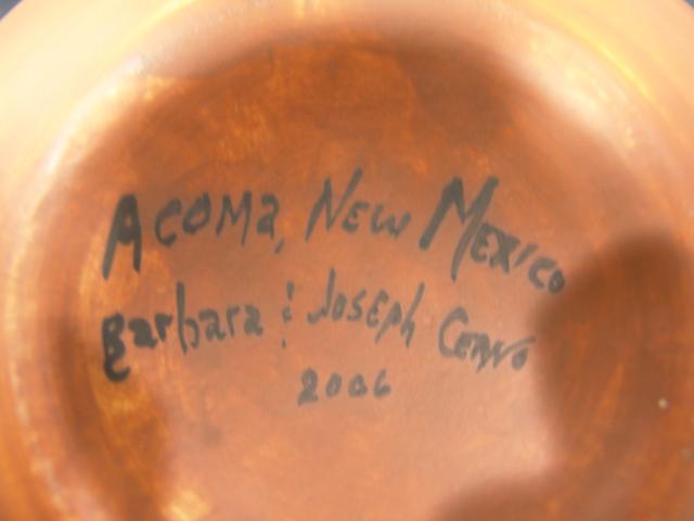 Circa 2006, Barbara & Joseph Cerno, A fantastic and quite large, very thin-walled olla, the polychrome geometric design with seed pods is set on a rare creamy yellow background - retail $5500; near mint condition. 14" x 15"