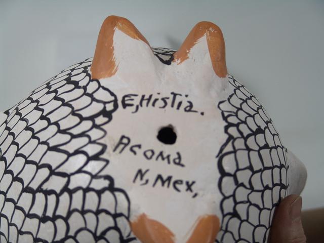 Circa 1987, Eva Histia, Large, traditional handmade pottery owl made when the now-deceased potter was 80 years old. She was the last of the old-style owl makers. 10-1/2"