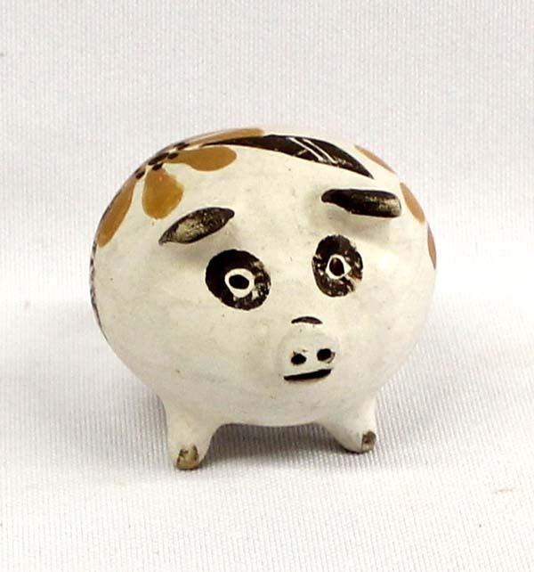 Native American Acoma Pottery Pig by Joyce Leno Barreras, measures 2'' x 1.5'' and is signed on the bottom