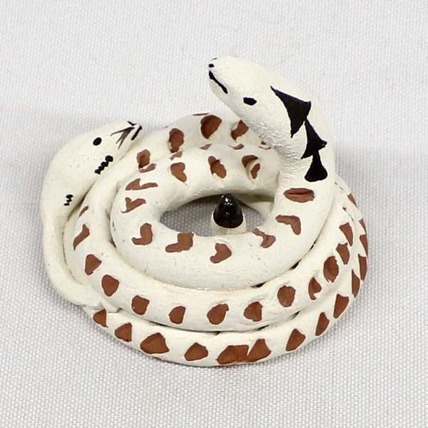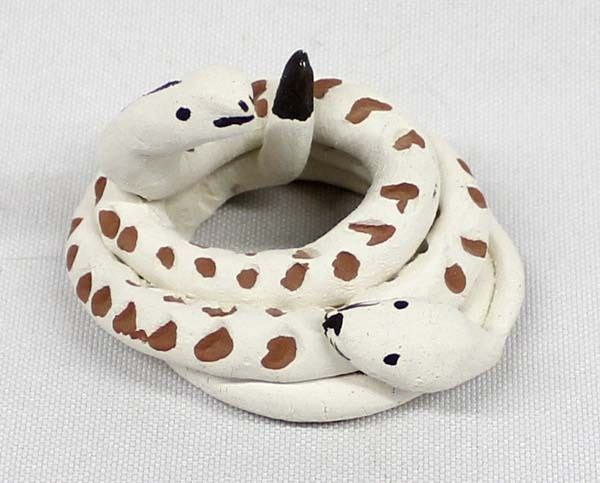 Native American Acoma Pottery Rattlesnakes by Norma Jean (Ortiz Juanico), measures 2'' x 2'' x 2'' and is signed on the bottom, FYI: ''Born in 1955, active ca. 1970s-present, specializes in polychrome jars, bowls, storytellers, turtles and turkeys''