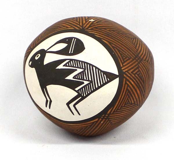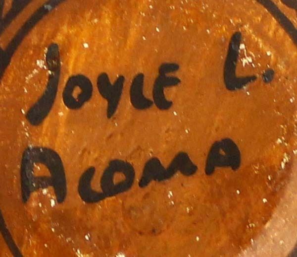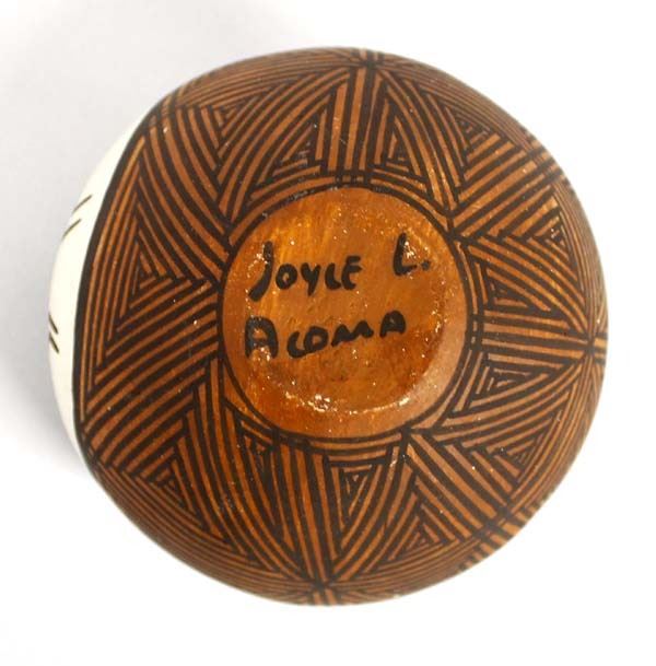 Native American Acoma Polychrome Seed Jar by Joyce Leno-Barraras 1952-present, measures 3.5'' x 4'' and signed by Joyce L. FYI: ''Joyce Leno, was born into the Acoma Pueblo in 1952. She has been creating since 1959. Joyce is a well know contemporary potter who exhibits at the Santa Fe Indian market and produces traditional hand coiled thin walled Acoma pottery''