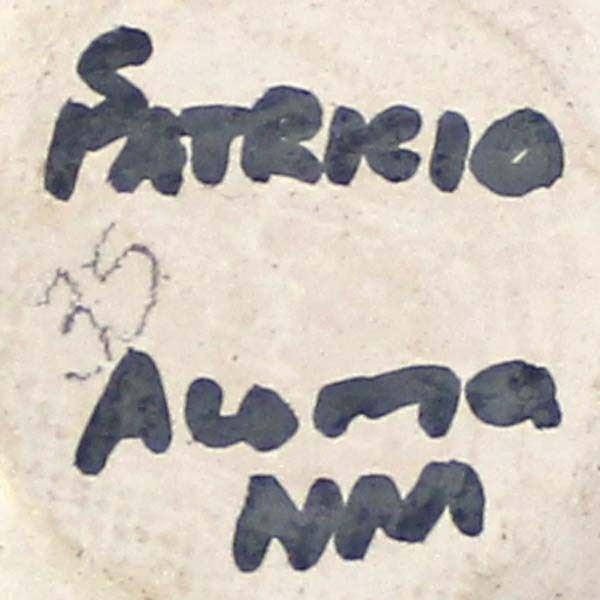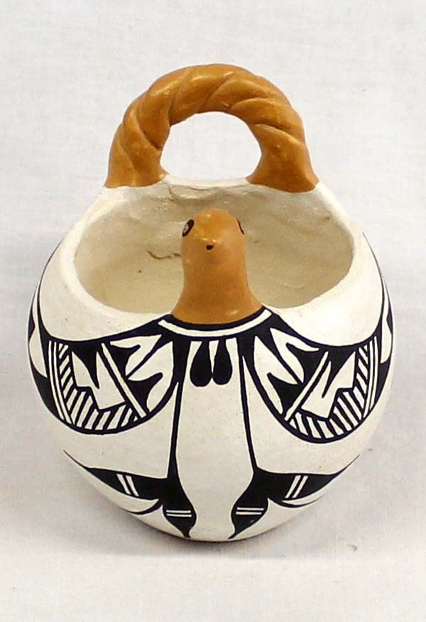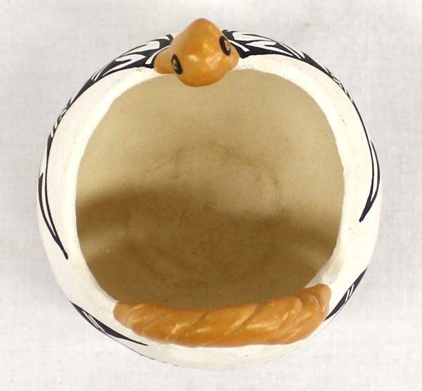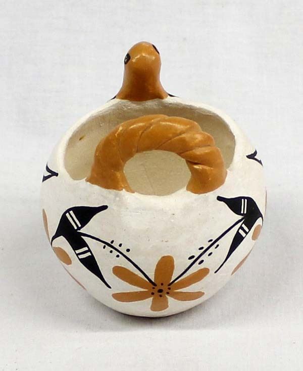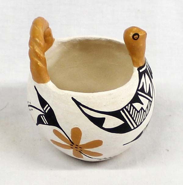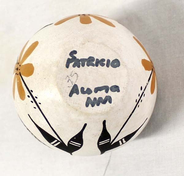 Vintage Native American Acoma Pottery Turkey Basket by Sandra Patricio, measures 3'' x 4'' and is signed on the bottom, polychrome