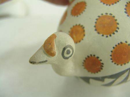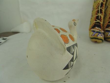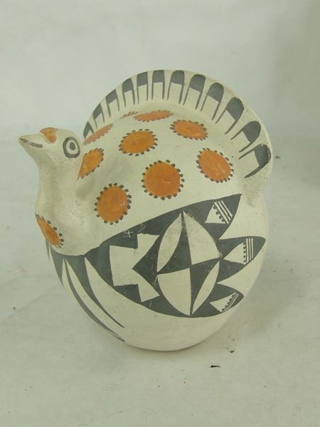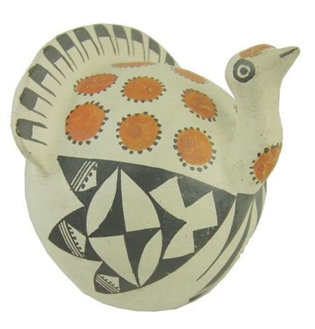 Ca. 1970s, Small polychrome pottery figure depicting a rare turkey (she did mostly owls). Very good condition, minor surface scratches. 5" x 5"