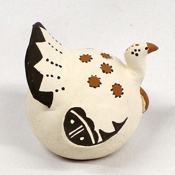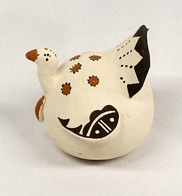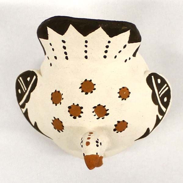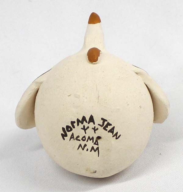 Native American Acoma Pottery Turkey by Norma Jean (Ortiz Juanico), measures 3'' x 3'' x 3'' and is signed on the bottom, FYI: ''Born in 1955, active ca. 1970s-present, specializes in polychrome jars, bowls, storytellers, turtles and turkeys''
