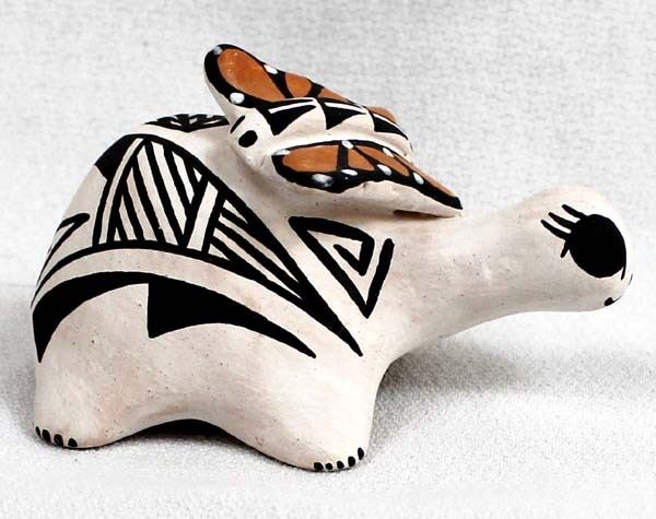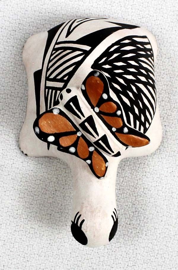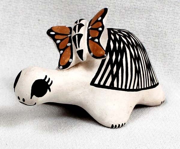 2008 Native American Acoma Pottery Turtle with Butterfly by Aggie Henderson-Poncho, measures 2.5'' x 1.5'' x 2.5'' and is signed on the bottom, FYI: ''Aggie'', Henderson-Poncho was born in 1973. Aggie was raised in the Acoma Pueblo, but is half Apache.''