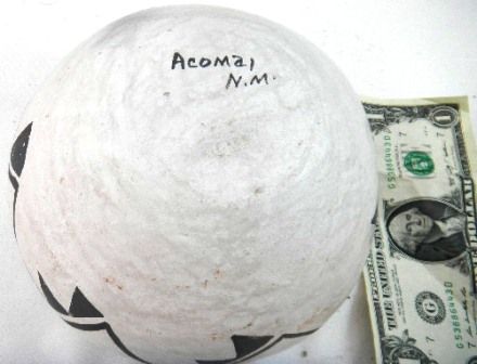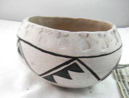 Acoma Pot from 1960 measuring 4 x 6 inches. The rim has deer head impressions stamped on rim within the pottery. Condition very good. Shipping $18.00