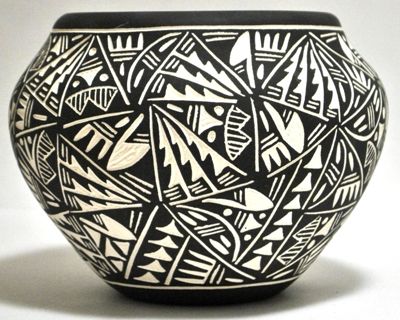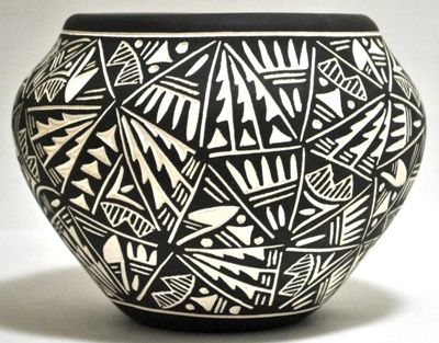 Acoma Pueblo Etched Bowl Pottery - Jae