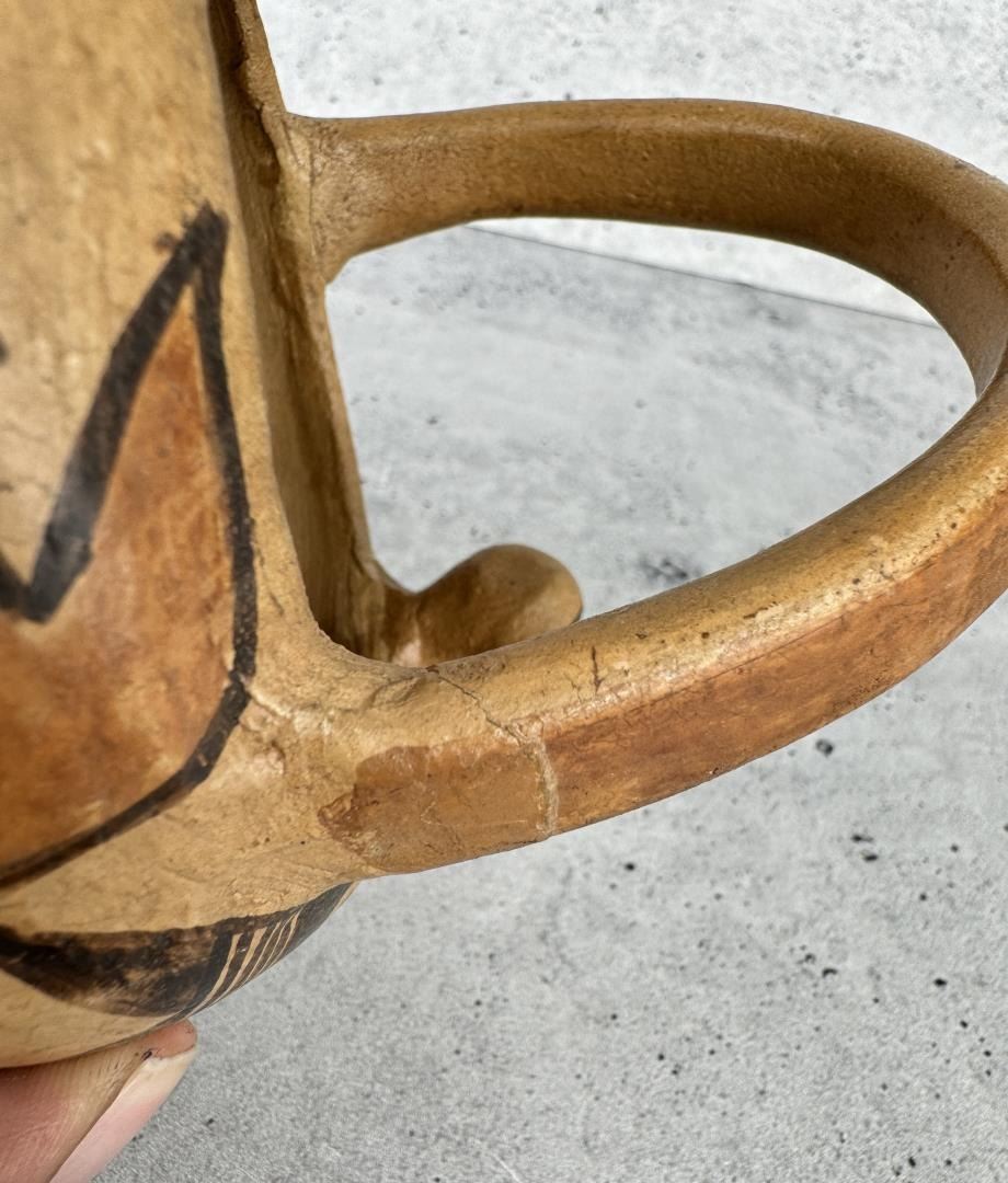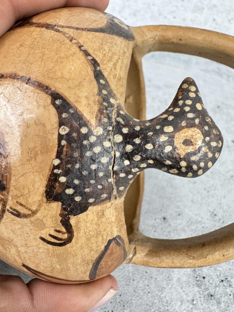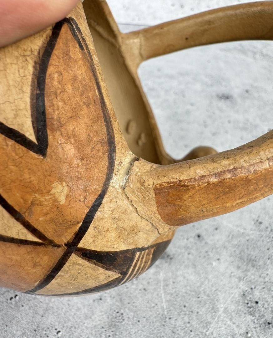 5 3/4" tall by 4 1/4" in diameter. Repaired as shown.