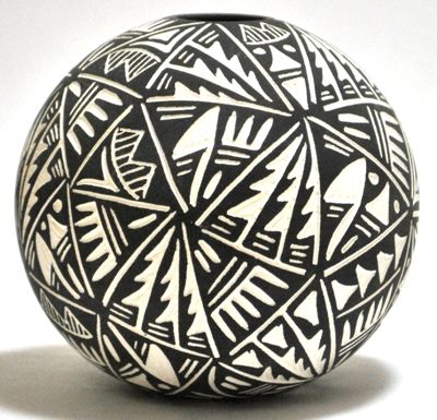 Acoma Pueblo Spheroid Etched Pottery - Jae