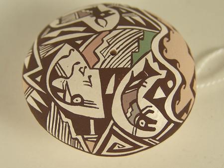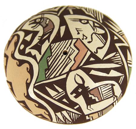 Superb miniature 4 color seed jar with zoomorphic animals and fine lines. 3/4" x 1-1/4"