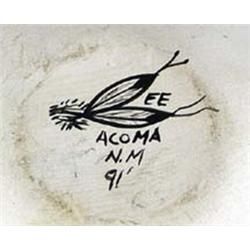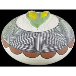 Acoma Indian Seed Pot Form / Sculpture. Sign "EE" with 2 Eagle Feathers. 4.5" Tall x 7.5" Diameter. Estimate $125 - $225.