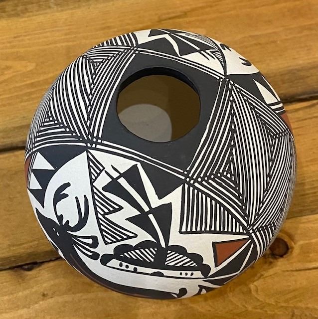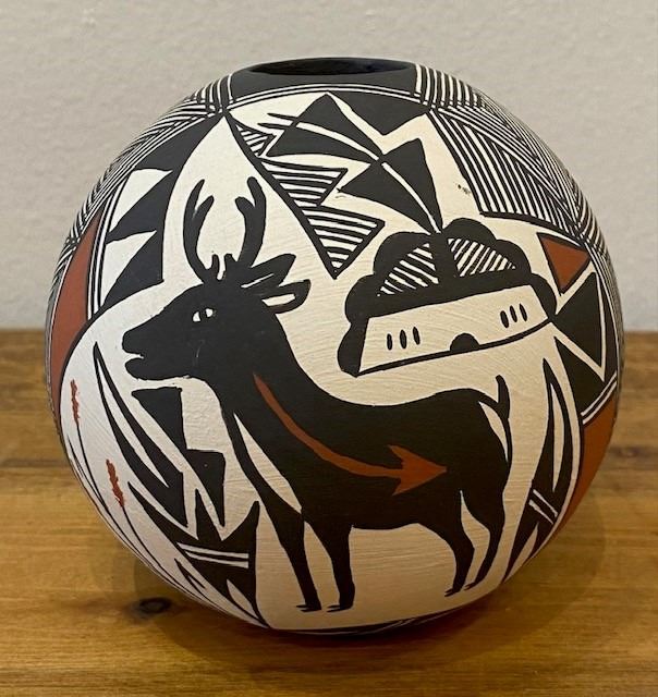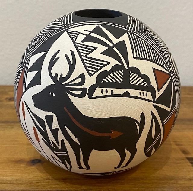 Nice Fine Line and Heartline Deer Design Seed Pot signed LJ (Loretta Joe).