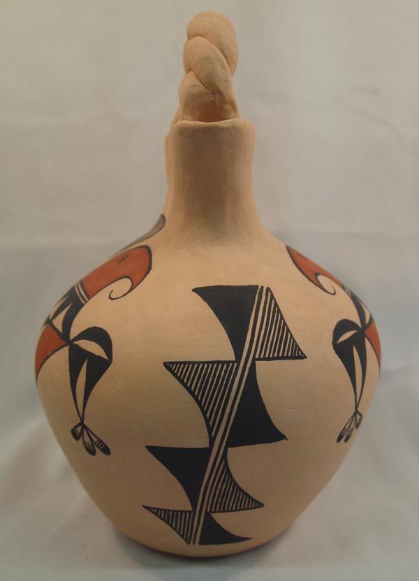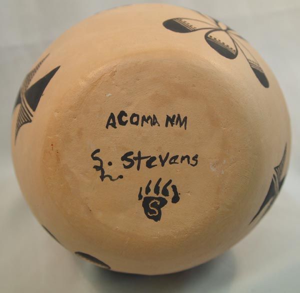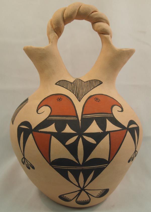 Native American Acoma Traditional Wedding Vase - Sharon Stevens. Very nice twisted handled, stylized designed wedding vase. Signed on the bottom by the artist Sharon Stevens, Acoma New Mexico. Measures approx. 11''H x 7 3/4''W.