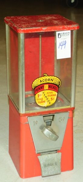Acorn Penny / Nickel Coin Operated Gumball Machine