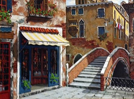 Across the Bridge by Victor Shvaiko. Unframed and stretched on Limited Edition enhanced canvas. Comes with certificate of Authenticity! Dimension (inches): 30x40