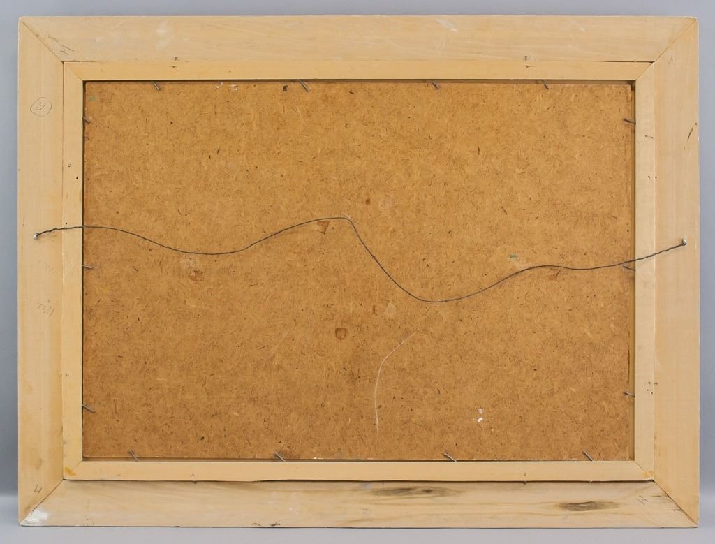 Acrylic on board, framed. Featuring a woman standing with a net over her shoulder by the shore, looking out over the ocean. Signed "Grace Light" to the bottom right. Board size: 39 x 57 cm (15.3 x 22.5 inches). Frame size: 54 x 72 cm (21.3 x 28.5 inches).