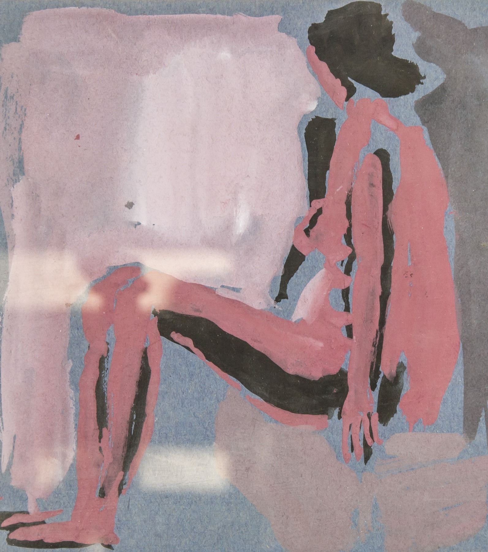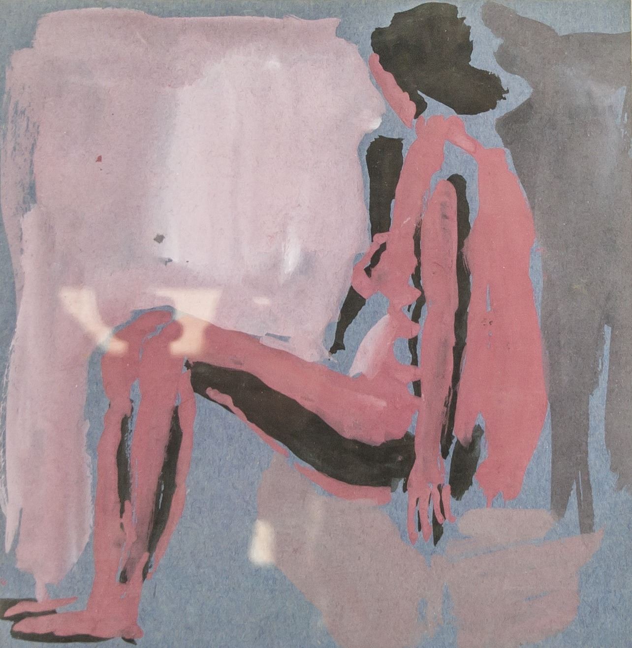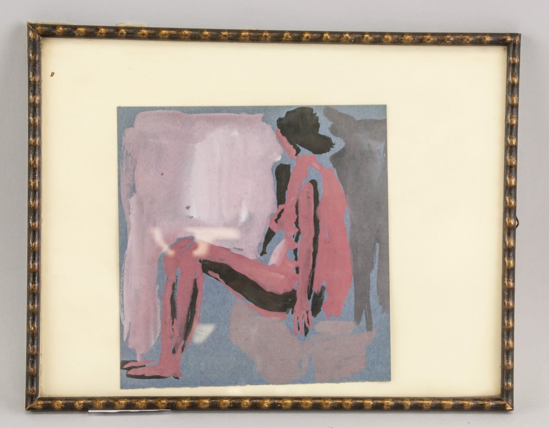Acrylic on paper, abstract woman nude study, framed. 6 x 6 inch (15 x 15 cm)