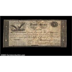Act of Feb. 24, 1815 Interest Bearing Treasury Note Very Fine. Considered by many collectors to be our nation's first federal currency, the War of 1812 issues were printed to finance the war effort against Great Britain. The "Second War of American Independence," as some historians have called this conflict, was caused by an extended disagreement between the United States and Great Britain over trade tariffs and violations of American maritime rights. With the demise of the First Bank of the United States and no provision for internal revenue taxes, the Treasury was left with meager choices of revenue to prosecute the war. In addition to the issue of federal bonds, the Treasury created these circulating notes that drew 5 2/5% interest per year. Listed in Hessler as X83c, and identical to that number on page 57 of Hessler's U.S. Paper Money. A rare note in all grades, this piece is particularly noteworthy as it is utterly intact and totally free of restoration. This note is from the issue authorized immediately after the end of the War of 1812, an it is the first example that we have handled that is neither a remainder nor a cancelled issued note. This important historic example of what many people consider to be the first federally issued U.S. currency would be an important rarity in any form, but a fully issued, uncancelled, undamaged piece could easily elicit a runaway price. Important notice: We expect to be auctioning lots at the rate of 200-250 per hour. Sometimes eBay Premier live bid software cannot keep up with that pace, so we strongly recommend that you place a realistic proxy bid now as insurance to avoid disappointment. Also please note that all Heritage/CAA lots purchased through eBay Premier carry a 20% Buyer's Premium. Please make sure you read the Terms and Conditions.