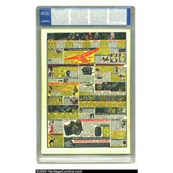 Action Comics #1 (DC, 1938) CGC GD+ 2.5 Cream to off-white pages. Here's the comic book that started it all. No other book has had the impact that this sixty-four page, all-in-color-for-a-dime classic "funny book" has had. Superman was born in the pages and on the front cover of this much-coveted item from 1938. How many times have comic book collectors dreamed of coming across a copy of this in some dark, out-of-the-way curio shop, or better yet, a dusty attic in somebody's grandmother's house? This copy, while far from the finest available, is solid and flat, with only a few light folds. Unfortunately, it has been hole-punched to fit in a binder, and while the label is not purple, CGC does note "Very minor amount of glue and very minor amount of color touch on cover." It's still a beauty, though, and it's still an Action Comics #1! Overstreet 2003 GD 2.0 value = $38,000. Important notice: Heritage usually auctions material at the rate of 200-250 lots per hour. On some occasions eBay Live bid software or the Internet may not be able to keep up with the pace of the auction. We recommend placing a realistic absentee bid now as insurance to avoid disappointment. Occasionally the auctioneer may eliminate or reject an eBay Live bid, and the auctioneer may also reopen a lot after the close of the eBay live bidding (usually because we missed an audience bid), and may reject your bid even if it shows you as the winning bidder. By bidding via eBay Live, you agree that Heritage may award the lot to another bidder at its sole discretion under the circumstances described above or any other reasonable circumstances. Also please note that all Heritage lots purchased through eBay Live carry a 20% Buyer's Premium. Please make sure you read the Terms and Conditions before you bid.