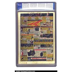 Action Comics #1 (DC, 1938) CGC VG+ 4.5 Off-white to white pages. Featuring the introduction of Superman, this book single-handedly raised the comic industry from a second-rate medium of strip reprints to a legitimate business whose sales would eventually surpass even the best selling magazines. Action #1 is the holy grail of comic books, lusted after by virtually anyone who considers themselves a collector. This copy is a perfect VG+, simply because all of its major defects lie on the back cover. Exhibiting deep colors, clean paper and a tight spine, the book appears FN. Some light staining and a couple of small pieces out of the back cover lowers the grade, making this a wonderful chance to acquire a beautiful copy for a reasonable price. Once you own this book, you've reached the pinnacle of collecting. Overstreet 2002 GD 2.0 value = $38,000; FN 6.0 value = $105,000. Important notice: We expect to be auctioning lots at the rate of 200-250 per hour. Sometimes eBay Premier live bid software cannot keep up with that pace, so we strongly recommend that you place a realistic proxy bid now as insurance to avoid disappointment. Also please note that all Heritage/CAA lots purchased through eBay Premier carry a 20% Buyer's Premium. Please make sure you read the Terms and Conditions.