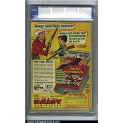 Action Comics #128 (DC, 1949) CGC VF/NM 9.0 White pages. Superman lets a bunch of kids have a go at him in a football game. The goofy cover is typical of this period and of the whimsical nature that DC comics took in the post war era. This is a magnificent copy. Overstreet 2002 NM value = $600. Important notice: We expect to be auctioning lots at the rate of 200-250 per hour. Sometimes eBay Premier live bid software cannot keep up with that pace, so we strongly recommend that you place a realistic proxy bid now as insurance to avoid disappointment. Also please note that all Heritage/CAA lots purchased through eBay Premier carry a 20% Buyer's Premium.