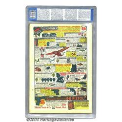 <B>Action Comics #15 (DC, 1939) CGC FN 6.0 Off-white pages.</B></I> Superman made the cover of <B>Action Comics</B></I>! If that sounds about as surprising as "the sun rose in the east," think again -- this was only the fourth cover appearance for the Man of Steel. He's drawn by Fred Guardineer, who was better known for rendering the Zatara stories in the mag (including this issue). Superman's appearance inside the comic is drawn by Joe Shuster, and Bob Kane and Bernard Baily also contributed artwork on the issue's other action and adventure tales. This FN specimen is actually one of the very finest available; only three have been graded higher by CGC, none scoring better than a 7.0. CGC notes, "piece of tape on interior spine." Overstreet 2004 FN 6.0 value = $1,863. <BR><BR><B>Important notice:</B> Heritage usually auctions material at the rate of 200-250 lots per hour. On some occasions eBay Live bid software or the Internet may not be able to keep up with the pace of the auction. We recommend placing a realistic absentee bid now as insurance to avoid disappointment. Occasionally the auctioneer may eliminate or reject an eBay Live bid, and the auctioneer may also reopen a lot after the close of the eBay live bidding (usually because we missed an audience bid), and may reject your bid even if it shows you as the winning bidder. By bidding via eBay Live, you agree that Heritage may award the lot to another bidder at its sole discretion under the circumstances described above or any other reasonable circumstances. Since eBay bids are not shown to us until we open the lot on the floor, we treat those bids just like floor bids. In most cases the floor responds before the eBay bid is presented to us, due to Internet lag time, so for consistency we have made it a policy that floor bids are always considered first over tie eBay live bids. Also please note that all Heritage lots purchased through eBay Live carry a 20% Buyer's Premium. Please make sure you read the Terms and Conditions before you bid.