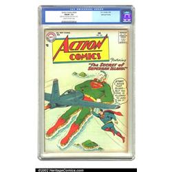 Action Comics #224 Mohawk Valley pedigree (DC, 1957) CGC FN/VF 7.0 Cream to off-white pages. This issue features the "Secret of Superman Island," a large cake floating on the ocean far away. This copy has a VF+ appearance, but was downgraded due to a dust shadow along the right edge and a chip out of the back cover spine. Overstreet 2002 FN 6.0 value = $108; VF 8.0 value = $191. Important notice: We expect to be auctioning lots at the rate of 200-250 per hour. Sometimes eBay Premier live bid software cannot keep up with that pace, so we strongly recommend that you place a realistic proxy bid now as insurance to avoid disappointment. Also please note that all Heritage/CAA lots purchased through eBay Premier carry a 20% Buyer's Premium. Please make sure you read the Terms and Conditions.