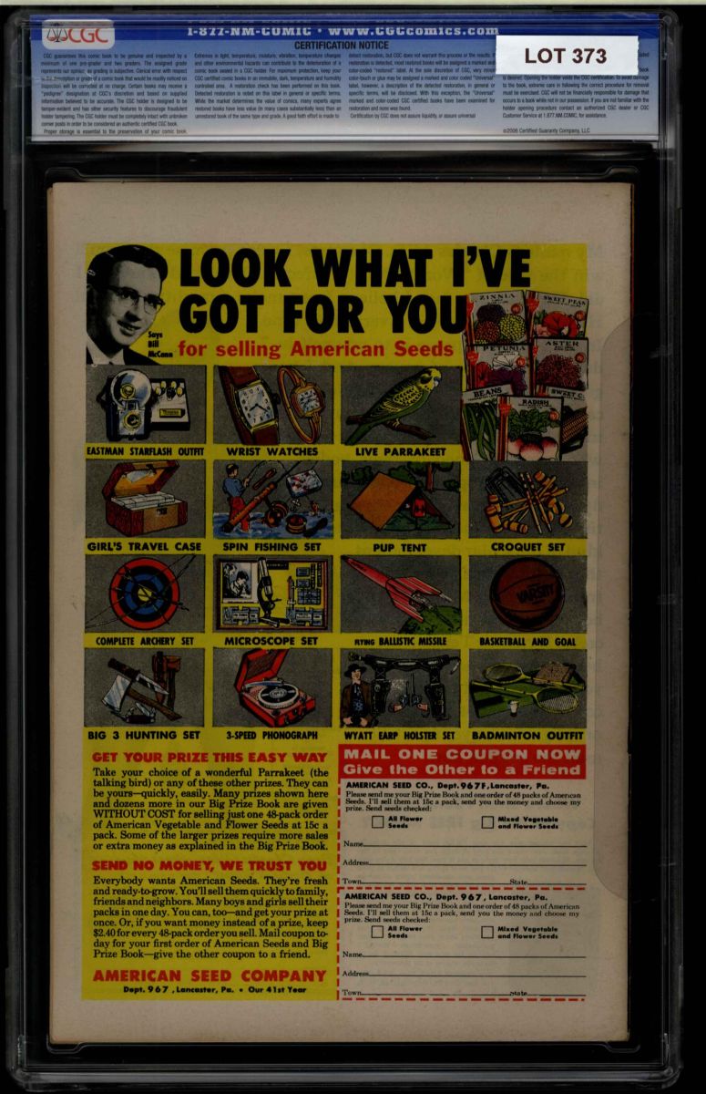 The Auctioneer has reserved the right to reject any and all bids, and to bid at the auction. Auctioneers Auctions are not on approval. Auctioneer does not allow certified material to be returned because of possible differences of opinion with respect to the grade offered by any third party organization, dealer, or service. Absolutely no guarantee of grade is offered for un-certified property sold and subsequently submitted to a third-party grading service. There will be no exceptions to this policy. Under extremely limited circumstances, (e.g. gross cataloging error) a purchaser, who did not bid from the floor, may request Auctioneer to evaluate voiding a sale; such request must be made in writing detailing the alleged gross error, and submission of the lot to the Auctioneer must be pre-approved by the Auctioneer. Bidder must notify Auctioneer in writing of such request within three (3) days of the non-floor bidder receipt of the lot. Any lot that is to be evaluated must be in our offices within 30 days after Auction. Grading does not qualify for this evaluation process nor do such complaints constitute a basis to challenge the authenticity of a lot. AFTER THAT 30-DAY PERIOD, NO LOTS MAY BE RETURNED FOR REASONS OTHER THAN AUTHENTICITY. Lots returned must be housed intact in the original holder. No lots purchased by floor Bidders may be returned (including those Bidders acting as agents for others). Late remittance for purchases may be considered just cause to revoke all return privileges. B: Auctions conducted solely on the Internet have a THREE (3) DAY RETURN POLICY: Lots paid for within seven days of the Auction closing are sold with a three (3) day return privilege. You may return lots under the following conditions: Within three days of receipt of the lot, you must first notify Auctioneer by contacting Client Service by phone (314-680-8599) or e-mail (moundcityauctions@gmail.com), and immediately mail the lot(s) fully insured to the attention of Returns, Mound City Auctions 1081 Teson Rd. Hazelwood, MO. 63042. Lots must be housed intact in their original holder and in their original condition. You are responsible for the insured, safe delivery of any lots. Auctioneer will not be responsible for lots returned in non-registered mail or lots returned without prior authorization per section B. A non-negotiable return fee of 5% of the purchase price ($10 per lot minimum) will be deducted from the refund for each returned lot or billed directly. Postage and handling fees are not refunded. After the three-day period (from receipt), no items may be returned for any reason. Late remittance for purchases revokes all Return-Restock privileges. C: Bidders who have inspected the lots prior to the auction will not be granted any return privileges. D: Comic books sold referencing a third-party grading service are sold “as is” without any express or implied warranty. Certain warranties may be available from the grading services and the Bidder is referred to them for further details: Certified Guaranty Company, LLC. (CGC), P.O. Box 4738, Sarasota, FL 34230. E: Bidders who intend to challenge authenticity or provenance of a lot must notify Auctioneer in writing within thirty (30) days of the Auctions conclusion. In the event Auctioneer cannot deliver the lot or subsequently it is established that the lot lacks title, provenance, authenticity, or other transfer or condition issue is claimed, Auctioneer's liability shall be limited to rescission of sale and refund of purchase price; in no case shall Auctioneer's maximum liability exceed the high bid on that lot, which bid shall be deemed for all purposes the value of the lot. After one year has elapsed, Auctioneer's maximum liability shall be limited to any commissions and fees Auctioneer earned on that lot. F: All comics are guaranteed genuine, but are not guaranteed as to grade, since grading is a matter of opinion, an art and not a science, and therefore the opinion rendered by the Auctioneer or any third party grading service may not agree with the opinion of others (including trained experts), and the same expert may not grade the same item with the same grade at two different times. G: Since we cannot examine encapsulated comics, they are sold “as is”without our grading opinion, and may not be returned for any reason. Auctioneer shall not be liable for any patent or latent defect or controversy pertaining to or arising from any encapsulated collectible. In any such instance, purchaser's remedy, if any, shall be solely against the service certifying the collectible. H: Due to changing grading standards over time, differing interpretations, and to possible mishandling of items by subsequent owners, Auctioneer reserves the right to grade items differently than shown on certificates from any grading service that accompany the items. Auctioneer also reserves the right to grade items differently than the grades shown in the prior catalog should such items be reconsigned to any future auction. I: Although consensus grading is employed by most grading services, it should be noted as aforesaid that grading is not an exact science. In fact, it is entirely possible that if a lot is broken out of a plastic holder and resubmitted to another grading service or even to the same service, the lot could come back with a different grade assigned. J: Certification does not guarantee protection against the normal risks associated with potentially volatile markets. The degree of liquidity for certified collectibles will vary according to general market conditions and the particular lot involved. For some lots there may be no active market at all at certain points in time."
