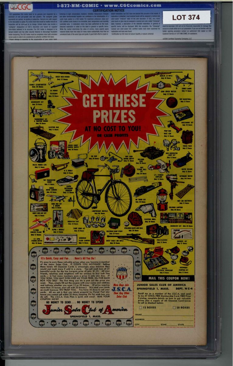 The Auctioneer has reserved the right to reject any and all bids, and to bid at the auction. Auctioneers Auctions are not on approval. Auctioneer does not allow certified material to be returned because of possible differences of opinion with respect to the grade offered by any third party organization, dealer, or service. Absolutely no guarantee of grade is offered for un-certified property sold and subsequently submitted to a third-party grading service. There will be no exceptions to this policy. Under extremely limited circumstances, (e.g. gross cataloging error) a purchaser, who did not bid from the floor, may request Auctioneer to evaluate voiding a sale; such request must be made in writing detailing the alleged gross error, and submission of the lot to the Auctioneer must be pre-approved by the Auctioneer. Bidder must notify Auctioneer in writing of such request within three (3) days of the non-floor bidder receipt of the lot. Any lot that is to be evaluated must be in our offices within 30 days after Auction. Grading does not qualify for this evaluation process nor do such complaints constitute a basis to challenge the authenticity of a lot. AFTER THAT 30-DAY PERIOD, NO LOTS MAY BE RETURNED FOR REASONS OTHER THAN AUTHENTICITY. Lots returned must be housed intact in the original holder. No lots purchased by floor Bidders may be returned (including those Bidders acting as agents for others). Late remittance for purchases may be considered just cause to revoke all return privileges. B: Auctions conducted solely on the Internet have a THREE (3) DAY RETURN POLICY: Lots paid for within seven days of the Auction closing are sold with a three (3) day return privilege. You may return lots under the following conditions: Within three days of receipt of the lot, you must first notify Auctioneer by contacting Client Service by phone (314-680-8599) or e-mail (moundcityauctions@gmail.com), and immediately mail the lot(s) fully insured to the attention of Returns, Mound City Auctions 1081 Teson Rd. Hazelwood, MO. 63042. Lots must be housed intact in their original holder and in their original condition. You are responsible for the insured, safe delivery of any lots. Auctioneer will not be responsible for lots returned in non-registered mail or lots returned without prior authorization per section B. A non-negotiable return fee of 5% of the purchase price ($10 per lot minimum) will be deducted from the refund for each returned lot or billed directly. Postage and handling fees are not refunded. After the three-day period (from receipt), no items may be returned for any reason. Late remittance for purchases revokes all Return-Restock privileges. C: Bidders who have inspected the lots prior to the auction will not be granted any return privileges. D: Comic books sold referencing a third-party grading service are sold “as is” without any express or implied warranty. Certain warranties may be available from the grading services and the Bidder is referred to them for further details: Certified Guaranty Company, LLC. (CGC), P.O. Box 4738, Sarasota, FL 34230. E: Bidders who intend to challenge authenticity or provenance of a lot must notify Auctioneer in writing within thirty (30) days of the Auctions conclusion. In the event Auctioneer cannot deliver the lot or subsequently it is established that the lot lacks title, provenance, authenticity, or other transfer or condition issue is claimed, Auctioneer's liability shall be limited to rescission of sale and refund of purchase price; in no case shall Auctioneer's maximum liability exceed the high bid on that lot, which bid shall be deemed for all purposes the value of the lot. After one year has elapsed, Auctioneer's maximum liability shall be limited to any commissions and fees Auctioneer earned on that lot. F: All comics are guaranteed genuine, but are not guaranteed as to grade, since grading is a matter of opinion, an art and not a science, and therefore the opinion rendered by the Auctioneer or any third party grading service may not agree with the opinion of others (including trained experts), and the same expert may not grade the same item with the same grade at two different times. G: Since we cannot examine encapsulated comics, they are sold “as is”without our grading opinion, and may not be returned for any reason. Auctioneer shall not be liable for any patent or latent defect or controversy pertaining to or arising from any encapsulated collectible. In any such instance, purchaser's remedy, if any, shall be solely against the service certifying the collectible. H: Due to changing grading standards over time, differing interpretations, and to possible mishandling of items by subsequent owners, Auctioneer reserves the right to grade items differently than shown on certificates from any grading service that accompany the items. Auctioneer also reserves the right to grade items differently than the grades shown in the prior catalog should such items be reconsigned to any future auction. I: Although consensus grading is employed by most grading services, it should be noted as aforesaid that grading is not an exact science. In fact, it is entirely possible that if a lot is broken out of a plastic holder and resubmitted to another grading service or even to the same service, the lot could come back with a different grade assigned. J: Certification does not guarantee protection against the normal risks associated with potentially volatile markets. The degree of liquidity for certified collectibles will vary according to general market conditions and the particular lot involved. For some lots there may be no active market at all at certain points in time."