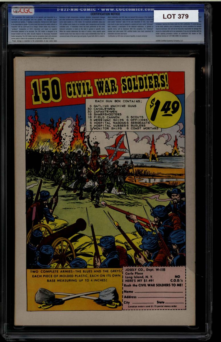 The Auctioneer has reserved the right to reject any and all bids, and to bid at the auction. Auctioneers Auctions are not on approval. Auctioneer does not allow certified material to be returned because of possible differences of opinion with respect to the grade offered by any third party organization, dealer, or service. Absolutely no guarantee of grade is offered for un-certified property sold and subsequently submitted to a third-party grading service. There will be no exceptions to this policy. Under extremely limited circumstances, (e.g. gross cataloging error) a purchaser, who did not bid from the floor, may request Auctioneer to evaluate voiding a sale; such request must be made in writing detailing the alleged gross error, and submission of the lot to the Auctioneer must be pre-approved by the Auctioneer. Bidder must notify Auctioneer in writing of such request within three (3) days of the non-floor bidder receipt of the lot. Any lot that is to be evaluated must be in our offices within 30 days after Auction. Grading does not qualify for this evaluation process nor do such complaints constitute a basis to challenge the authenticity of a lot. AFTER THAT 30-DAY PERIOD, NO LOTS MAY BE RETURNED FOR REASONS OTHER THAN AUTHENTICITY. Lots returned must be housed intact in the original holder. No lots purchased by floor Bidders may be returned (including those Bidders acting as agents for others). Late remittance for purchases may be considered just cause to revoke all return privileges. B: Auctions conducted solely on the Internet have a THREE (3) DAY RETURN POLICY: Lots paid for within seven days of the Auction closing are sold with a three (3) day return privilege. You may return lots under the following conditions: Within three days of receipt of the lot, you must first notify Auctioneer by contacting Client Service by phone (314-680-8599) or e-mail (moundcityauctions@gmail.com), and immediately mail the lot(s) fully insured to the attention of Returns, Mound City Auctions 1081 Teson Rd. Hazelwood, MO. 63042. Lots must be housed intact in their original holder and in their original condition. You are responsible for the insured, safe delivery of any lots. Auctioneer will not be responsible for lots returned in non-registered mail or lots returned without prior authorization per section B. A non-negotiable return fee of 5% of the purchase price ($10 per lot minimum) will be deducted from the refund for each returned lot or billed directly. Postage and handling fees are not refunded. After the three-day period (from receipt), no items may be returned for any reason. Late remittance for purchases revokes all Return-Restock privileges. C: Bidders who have inspected the lots prior to the auction will not be granted any return privileges. D: Comic books sold referencing a third-party grading service are sold “as is” without any express or implied warranty. Certain warranties may be available from the grading services and the Bidder is referred to them for further details: Certified Guaranty Company, LLC. (CGC), P.O. Box 4738, Sarasota, FL 34230. E: Bidders who intend to challenge authenticity or provenance of a lot must notify Auctioneer in writing within thirty (30) days of the Auctions conclusion. In the event Auctioneer cannot deliver the lot or subsequently it is established that the lot lacks title, provenance, authenticity, or other transfer or condition issue is claimed, Auctioneer's liability shall be limited to rescission of sale and refund of purchase price; in no case shall Auctioneer's maximum liability exceed the high bid on that lot, which bid shall be deemed for all purposes the value of the lot. After one year has elapsed, Auctioneer's maximum liability shall be limited to any commissions and fees Auctioneer earned on that lot. F: All comics are guaranteed genuine, but are not guaranteed as to grade, since grading is a matter of opinion, an art and not a science, and therefore the opinion rendered by the Auctioneer or any third party grading service may not agree with the opinion of others (including trained experts), and the same expert may not grade the same item with the same grade at two different times. G: Since we cannot examine encapsulated comics, they are sold “as is”without our grading opinion, and may not be returned for any reason. Auctioneer shall not be liable for any patent or latent defect or controversy pertaining to or arising from any encapsulated collectible. In any such instance, purchaser's remedy, if any, shall be solely against the service certifying the collectible. H: Due to changing grading standards over time, differing interpretations, and to possible mishandling of items by subsequent owners, Auctioneer reserves the right to grade items differently than shown on certificates from any grading service that accompany the items. Auctioneer also reserves the right to grade items differently than the grades shown in the prior catalog should such items be reconsigned to any future auction. I: Although consensus grading is employed by most grading services, it should be noted as aforesaid that grading is not an exact science. In fact, it is entirely possible that if a lot is broken out of a plastic holder and resubmitted to another grading service or even to the same service, the lot could come back with a different grade assigned. J: Certification does not guarantee protection against the normal risks associated with potentially volatile markets. The degree of liquidity for certified collectibles will vary according to general market conditions and the particular lot involved. For some lots there may be no active market at all at certain points in time."