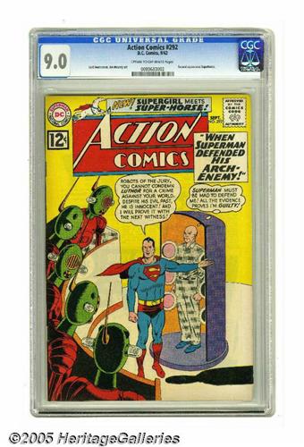<B>Action Comics #292 (DC, 1962) CGC VF/NM 9.0 Cream to off-white pages.</B></I> The second appearance of Comet the Super-Horse. Lex Luthor appearance. Curt Swan cover. Jim Mooney art. Overstreet 2005 VF/NM 9.0 value =$107; NM- 9.2 value = $140. CGC census 3/05: 3 in 9.0, 1 higher.