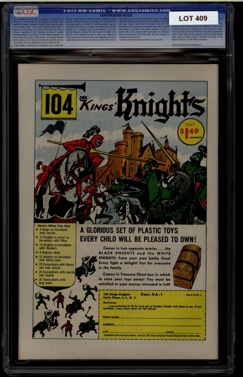 The Auctioneer has reserved the right to reject any and all bids, and to bid at the auction. Auctioneers Auctions are not on approval. Auctioneer does not allow certified material to be returned because of possible differences of opinion with respect to the grade offered by any third party organization, dealer, or service. Absolutely no guarantee of grade is offered for un-certified property sold and subsequently submitted to a third-party grading service. There will be no exceptions to this policy. Under extremely limited circumstances, (e.g. gross cataloging error) a purchaser, who did not bid from the floor, may request Auctioneer to evaluate voiding a sale; such request must be made in writing detailing the alleged gross error, and submission of the lot to the Auctioneer must be pre-approved by the Auctioneer. Bidder must notify Auctioneer in writing of such request within three (3) days of the non-floor bidder receipt of the lot. Any lot that is to be evaluated must be in our offices within 30 days after Auction. Grading does not qualify for this evaluation process nor do such complaints constitute a basis to challenge the authenticity of a lot. AFTER THAT 30-DAY PERIOD, NO LOTS MAY BE RETURNED FOR REASONS OTHER THAN AUTHENTICITY. Lots returned must be housed intact in the original holder. No lots purchased by floor Bidders may be returned (including those Bidders acting as agents for others). Late remittance for purchases may be considered just cause to revoke all return privileges. B: Auctions conducted solely on the Internet have a THREE (3) DAY RETURN POLICY: Lots paid for within seven days of the Auction closing are sold with a three (3) day return privilege. You may return lots under the following conditions: Within three days of receipt of the lot, you must first notify Auctioneer by contacting Client Service by phone (314-680-8599) or e-mail (moundcityauctions@gmail.com), and immediately mail the lot(s) fully insured to the attention of Returns, Mound City Auctions 1081 Teson Rd. Hazelwood, MO. 63042. Lots must be housed intact in their original holder and in their original condition. You are responsible for the insured, safe delivery of any lots. Auctioneer will not be responsible for lots returned in non-registered mail or lots returned without prior authorization per section B. A non-negotiable return fee of 5% of the purchase price ($10 per lot minimum) will be deducted from the refund for each returned lot or billed directly. Postage and handling fees are not refunded. After the three-day period (from receipt), no items may be returned for any reason. Late remittance for purchases revokes all Return-Restock privileges. C: Bidders who have inspected the lots prior to the auction will not be granted any return privileges. D: Comic books sold referencing a third-party grading service are sold “as is” without any express or implied warranty. Certain warranties may be available from the grading services and the Bidder is referred to them for further details: Certified Guaranty Company, LLC. (CGC), P.O. Box 4738, Sarasota, FL 34230. E: Bidders who intend to challenge authenticity or provenance of a lot must notify Auctioneer in writing within thirty (30) days of the Auctions conclusion. In the event Auctioneer cannot deliver the lot or subsequently it is established that the lot lacks title, provenance, authenticity, or other transfer or condition issue is claimed, Auctioneer's liability shall be limited to rescission of sale and refund of purchase price; in no case shall Auctioneer's maximum liability exceed the high bid on that lot, which bid shall be deemed for all purposes the value of the lot. After one year has elapsed, Auctioneer's maximum liability shall be limited to any commissions and fees Auctioneer earned on that lot. F: All comics are guaranteed genuine, but are not guaranteed as to grade, since grading is a matter of opinion, an art and not a science, and therefore the opinion rendered by the Auctioneer or any third party grading service may not agree with the opinion of others (including trained experts), and the same expert may not grade the same item with the same grade at two different times. G: Since we cannot examine encapsulated comics, they are sold “as is”without our grading opinion, and may not be returned for any reason. Auctioneer shall not be liable for any patent or latent defect or controversy pertaining to or arising from any encapsulated collectible. In any such instance, purchaser's remedy, if any, shall be solely against the service certifying the collectible. H: Due to changing grading standards over time, differing interpretations, and to possible mishandling of items by subsequent owners, Auctioneer reserves the right to grade items differently than shown on certificates from any grading service that accompany the items. Auctioneer also reserves the right to grade items differently than the grades shown in the prior catalog should such items be reconsigned to any future auction. I: Although consensus grading is employed by most grading services, it should be noted as aforesaid that grading is not an exact science. In fact, it is entirely possible that if a lot is broken out of a plastic holder and resubmitted to another grading service or even to the same service, the lot could come back with a different grade assigned. J: Certification does not guarantee protection against the normal risks associated with potentially volatile markets. The degree of liquidity for certified collectibles will vary according to general market conditions and the particular lot involved. For some lots there may be no active market at all at certain points in time."