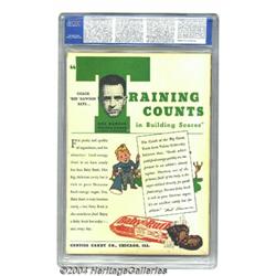 33. Signature Sales: The auction is not on approval. No certified material may be returned because of possible differences of opinion with respect to the grade offered by any third-party organization, dealer, or service. There are absolutely no exceptions to this policy. Under extremely limited circumstances, (e.g. gross cataloging error) a purchaser, who did not bid from the floor, may request Auctioneer to void a sale. Such request for evaluation must be made in writing detailing the alleged gross error, and submission of the lot to the Auctioneer must be preapproved by the Auctioneer. A Bidder must notify bid@heritagecomics.com in writing of the Bidder's request and such notice must be mailed within three (3) days of the mail Bidder's receipt of the lot. Any lot that is to be evaluated must be received in our offices within 30 days from the date of auction. Grading or method of manufacture do not qualify for this evaluation process nor do such complaints constitute a basis to challenge the authenticity of a lot. AFTER THAT 30-DAY PERIOD, NO LOTS MAY BE RETURNED FOR REASONS OTHER THAN AUTHENTICITY. Lots returned must be housed intact in the original holder. No lots purchased by floor Bidders may be returned (including those Bidders acting as agents for others). Late remittance for purchases may be considered just cause to revoke all return privileges.
