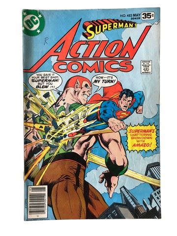 This iconic comic book issue, published in 1978, offers a thrilling adventure featuring the Man of Steel. Witness Superman's incredible powers and heroic deeds as he battles a classic villain or faces a challenging situation. With stunning artwork by Curt Swan, Action Comics #483 is a must-read for fans of Superman and those seeking classic superhero storytelling.