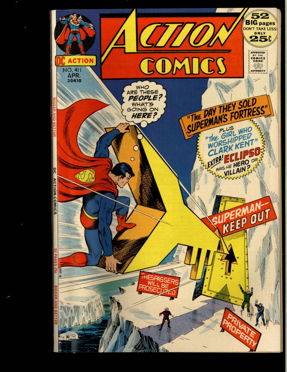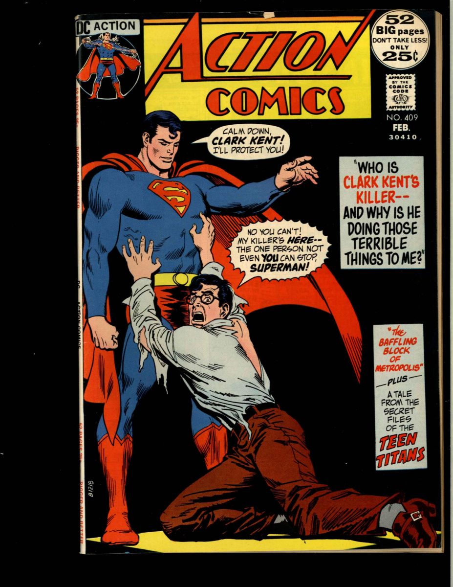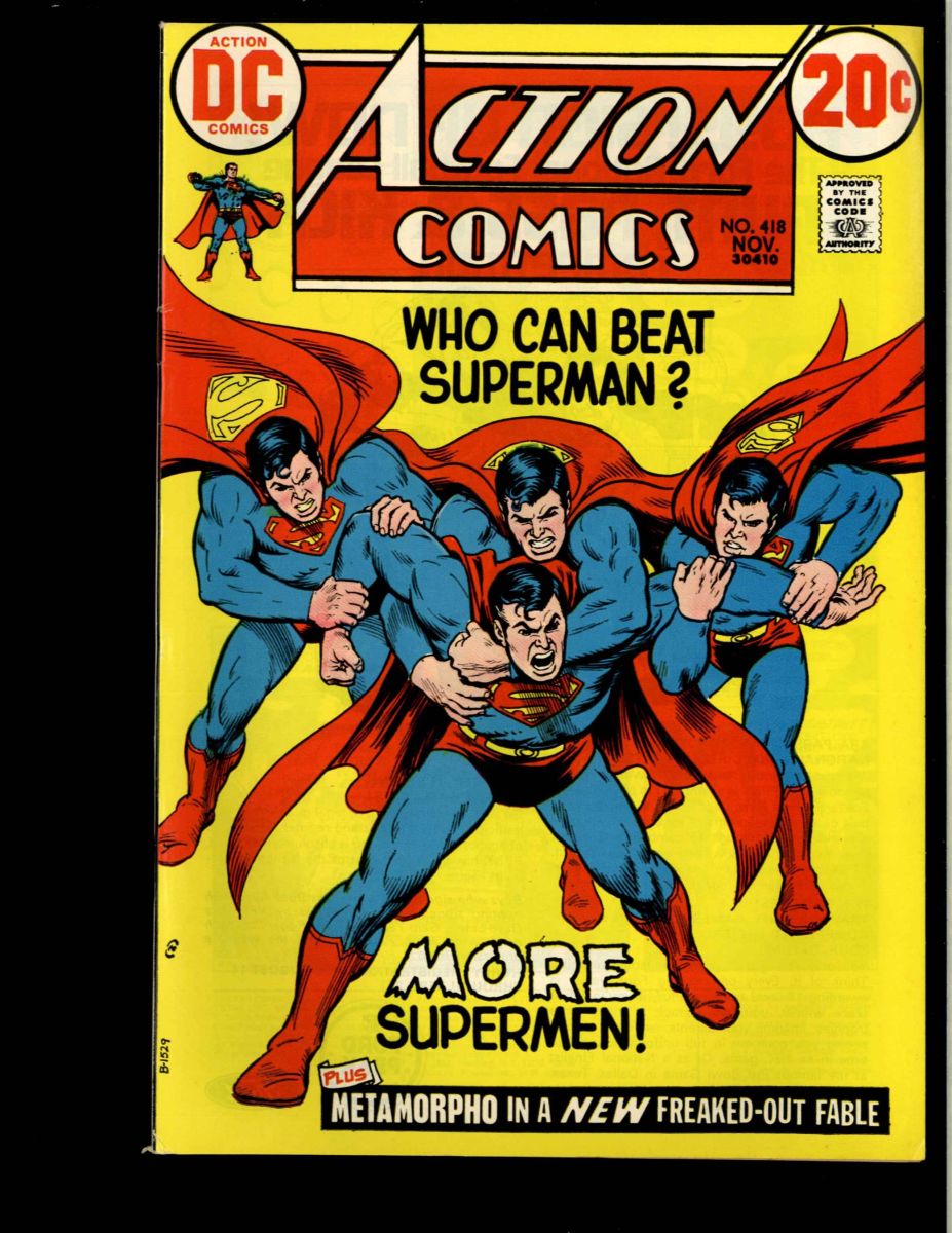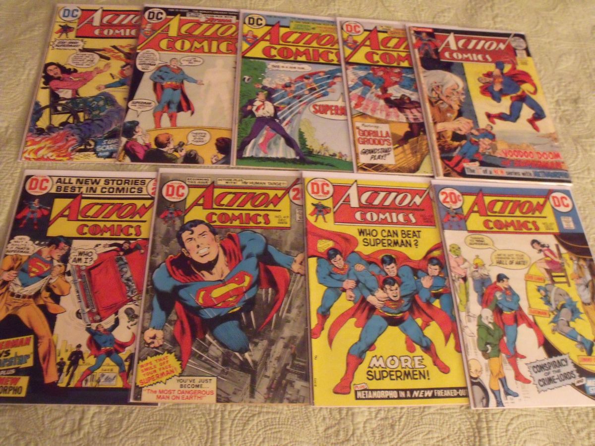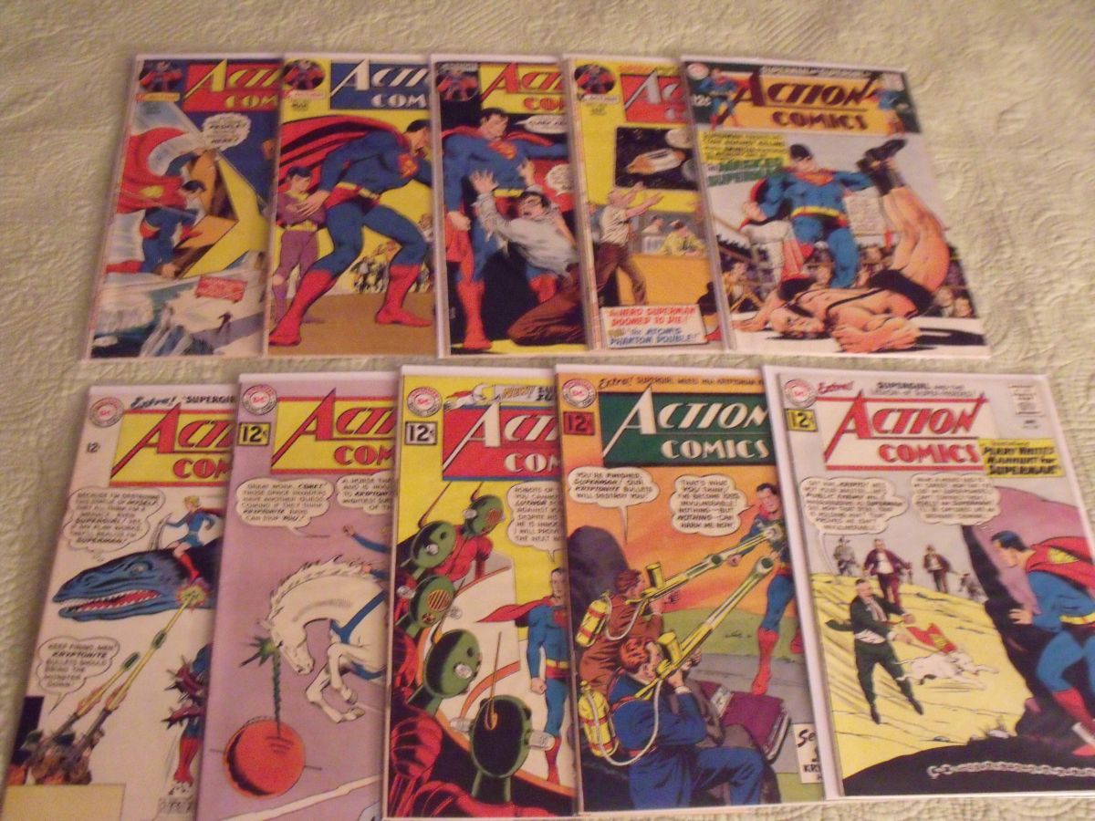 Action Comics #287, 291-293, 303, 372, 408-411, 413, 414, 416-419, 424, 426, 427. 19 issues total. Average condition FN to VF-
