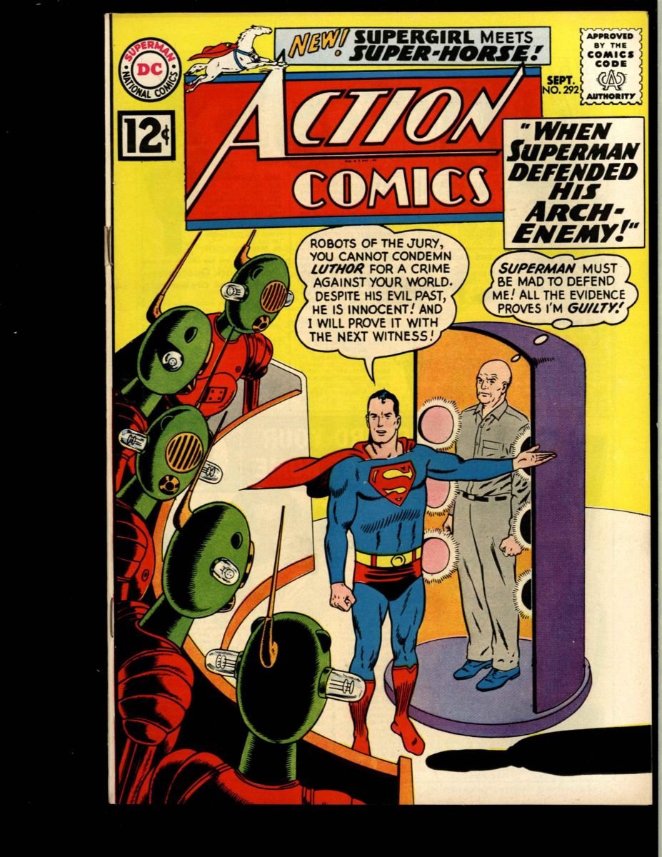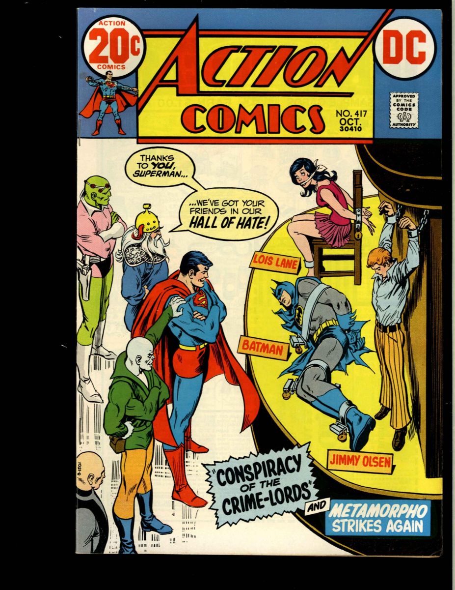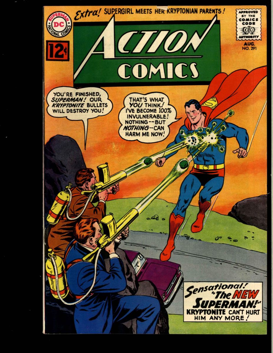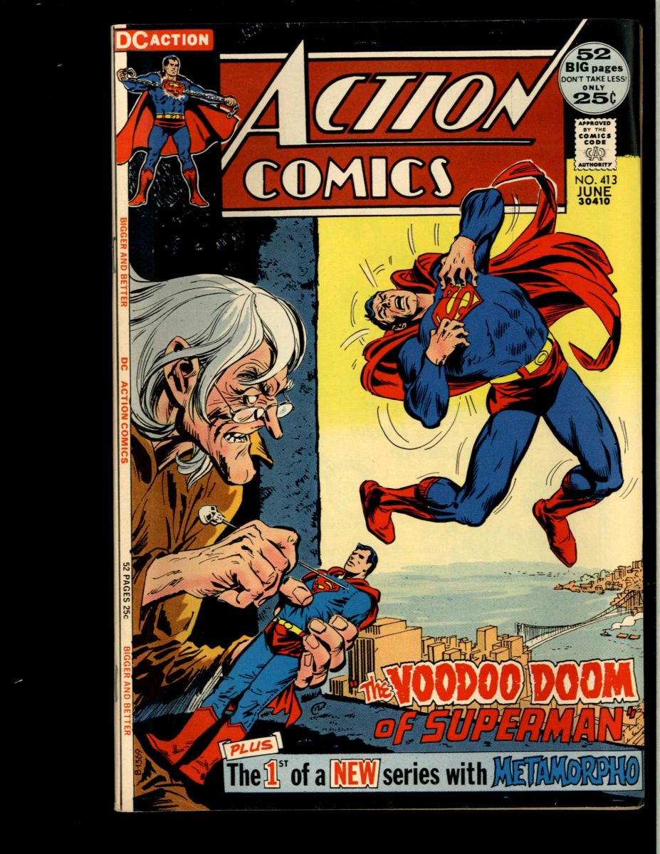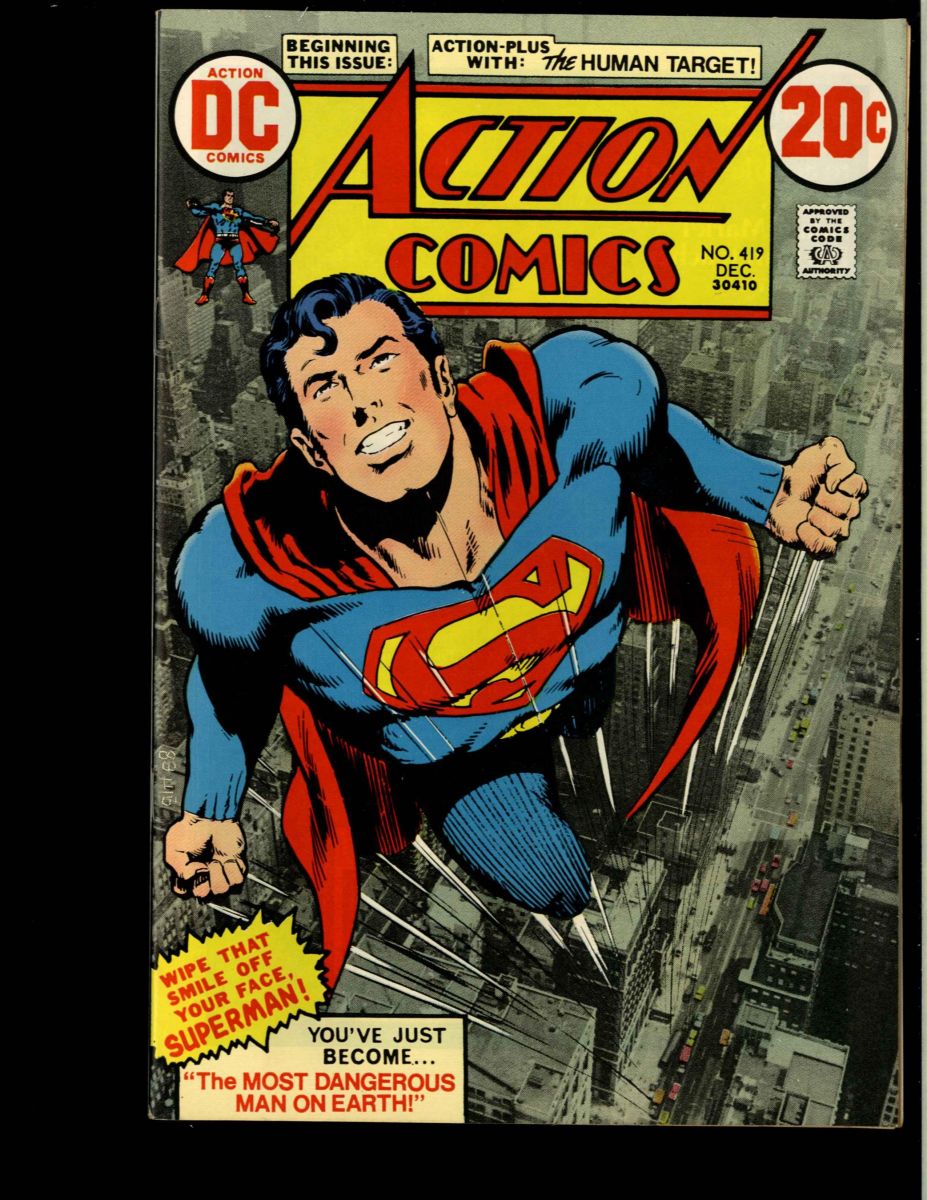 Action Comics #287, 291-293, 303, 372, 408-411, 413, 414, 416-419, 424, 426, 427. 19 issues total. Average condition FN to VF-