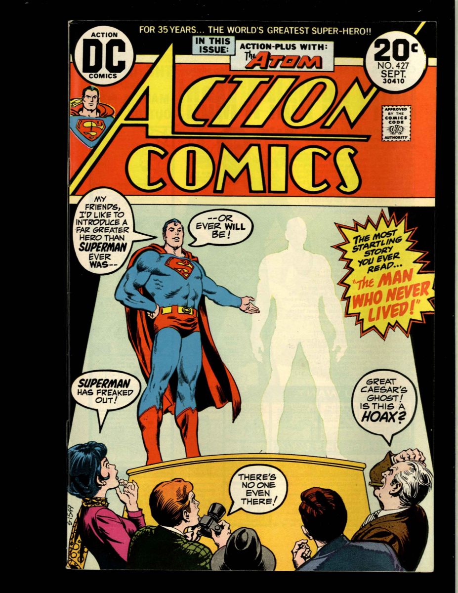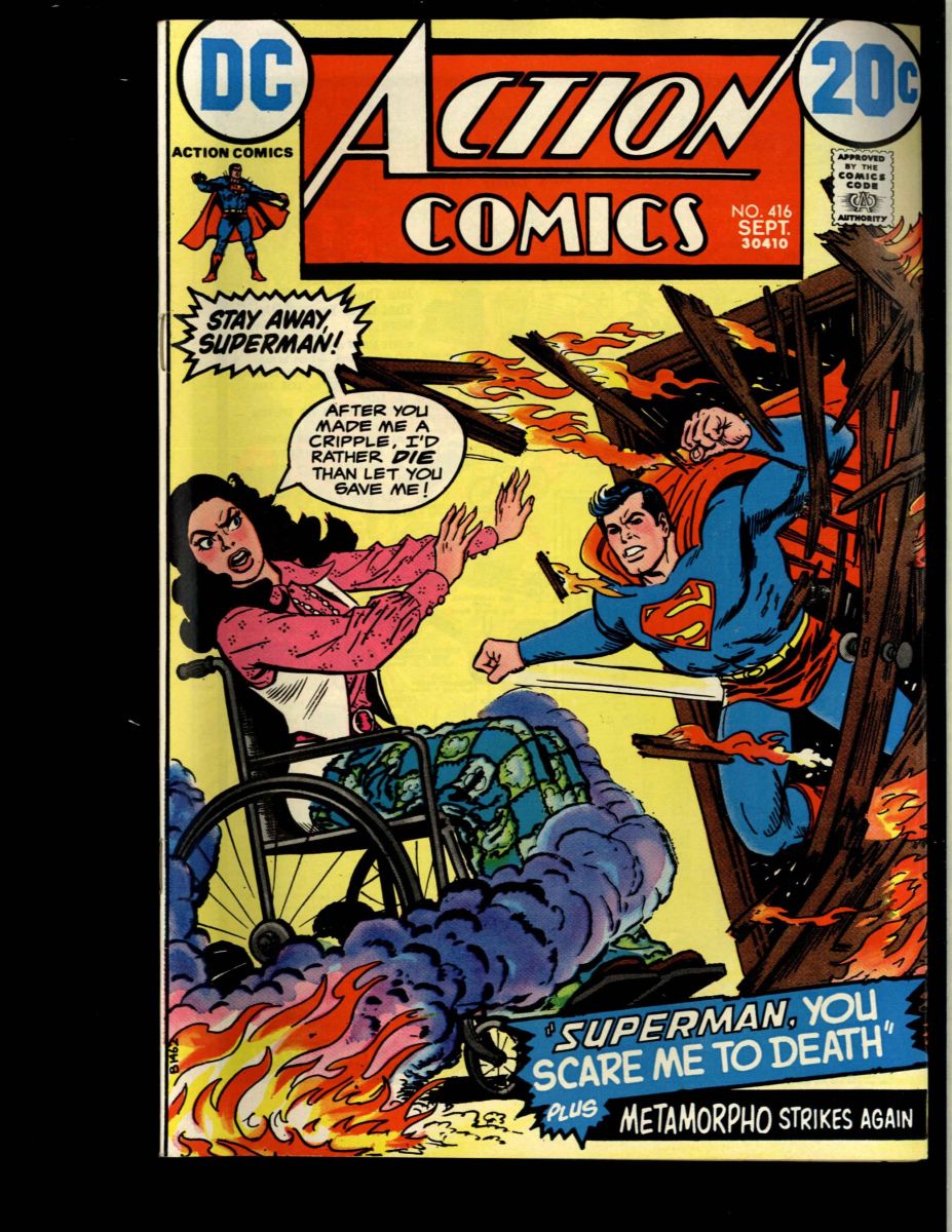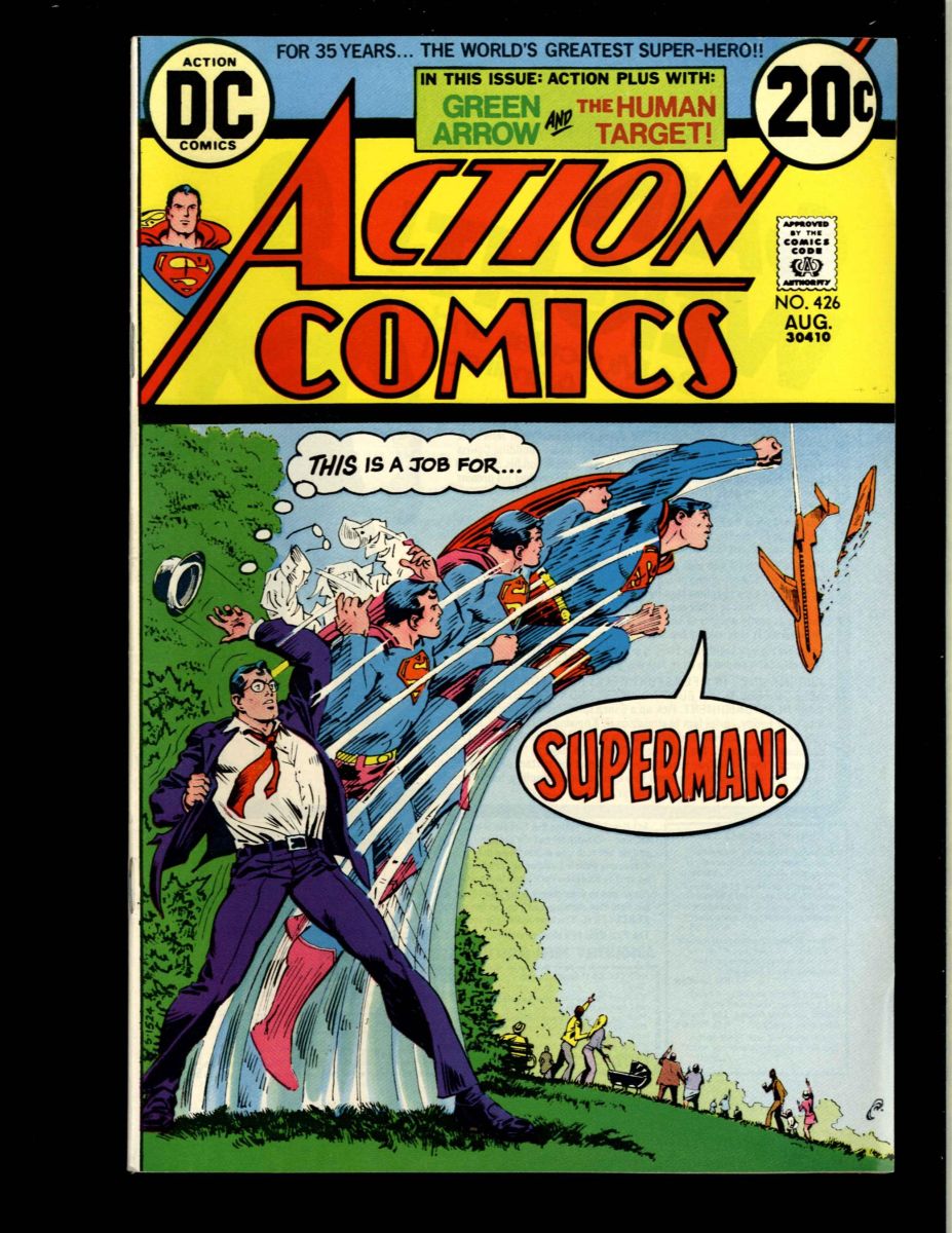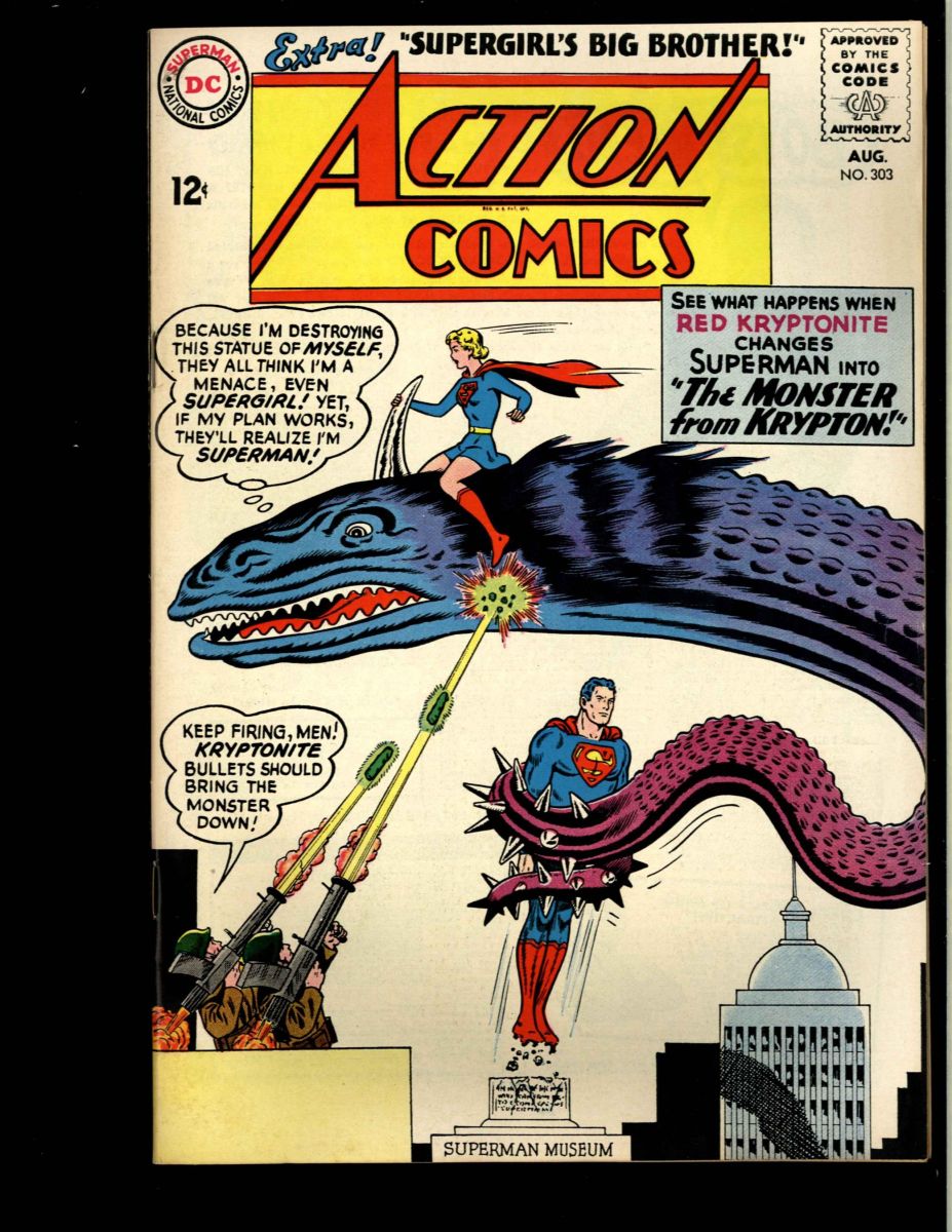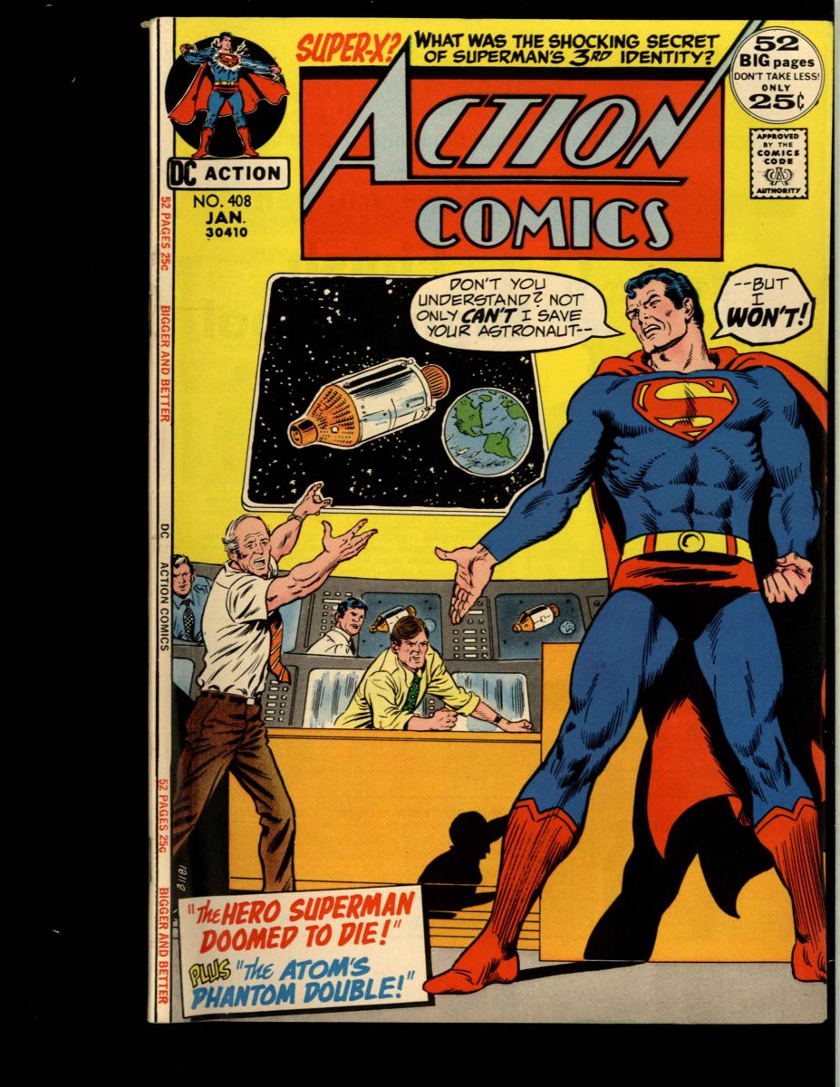 Action Comics #287, 291-293, 303, 372, 408-411, 413, 414, 416-419, 424, 426, 427. 19 issues total. Average condition FN to VF-
