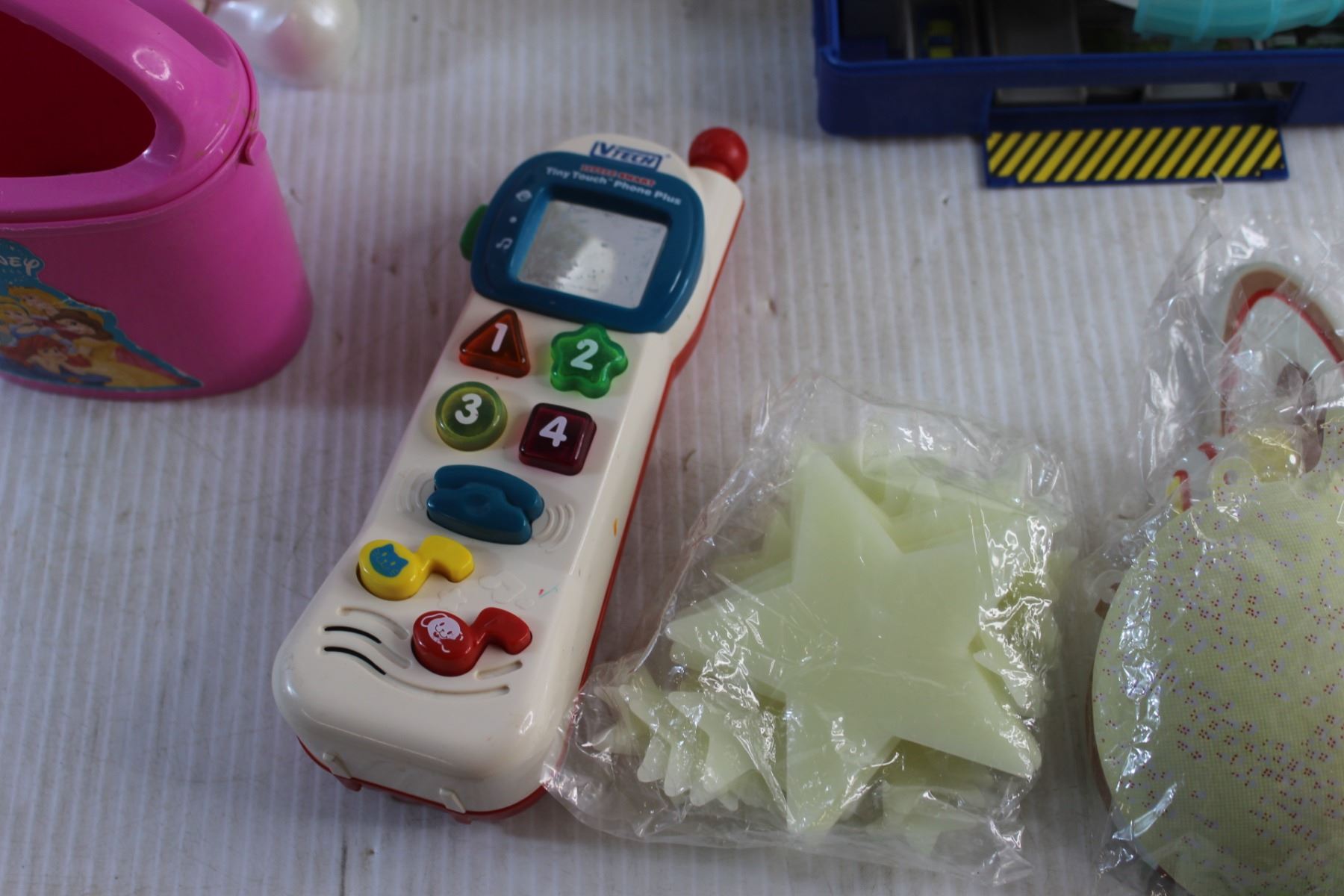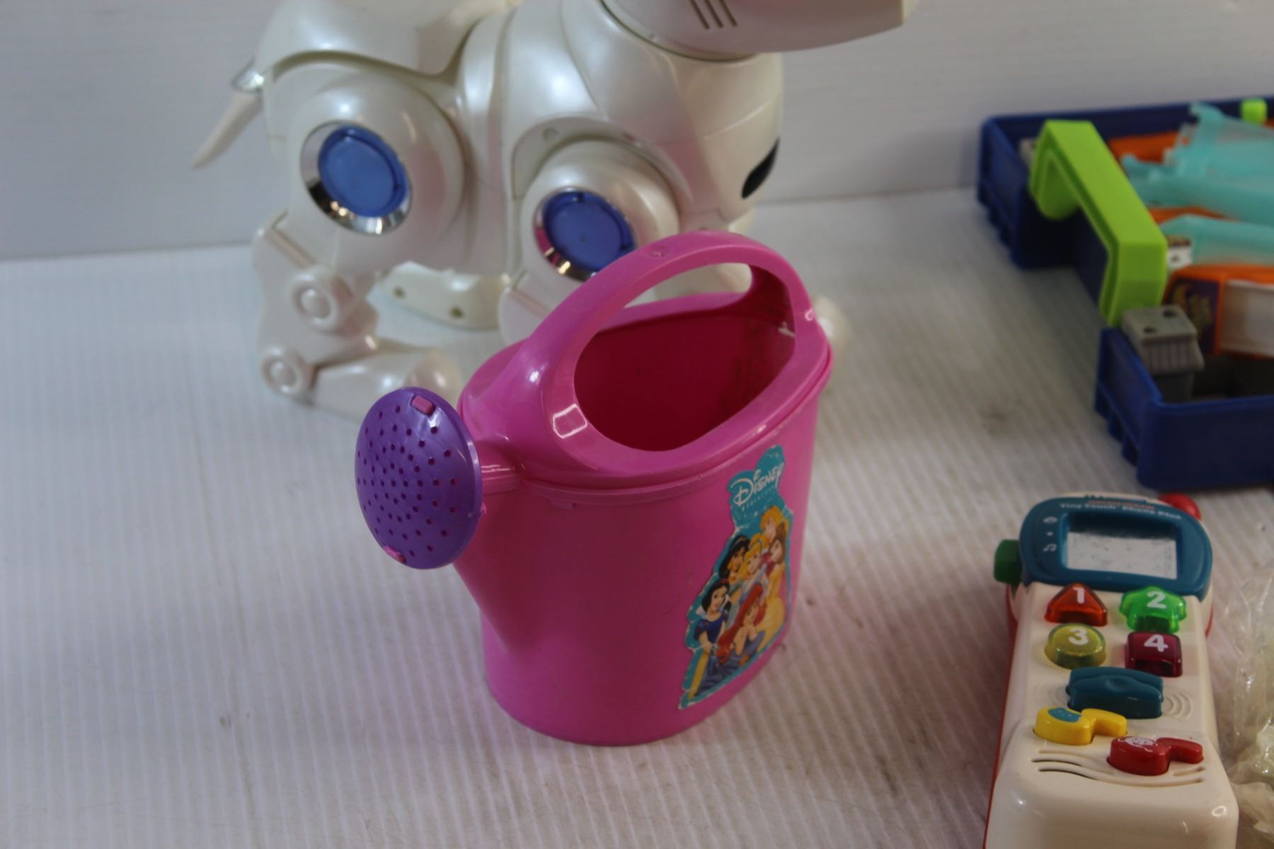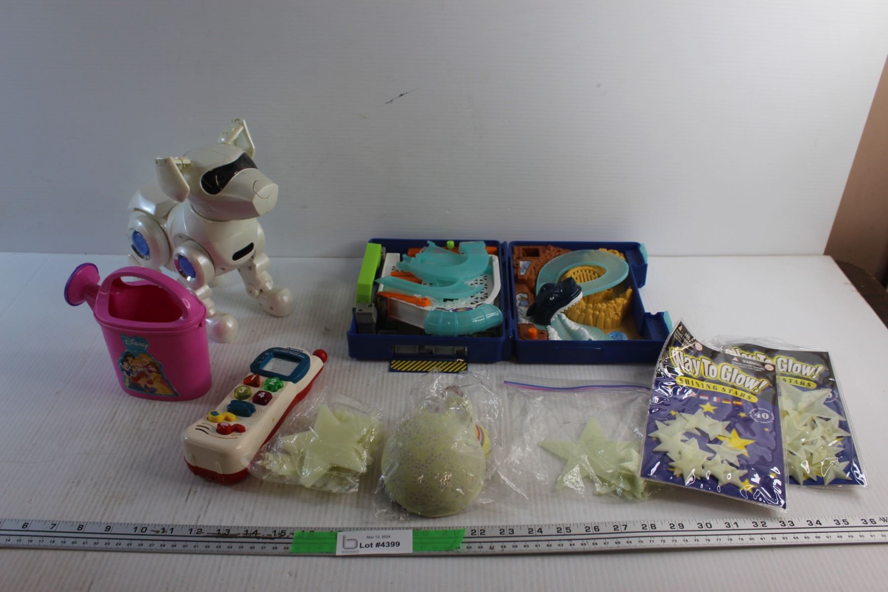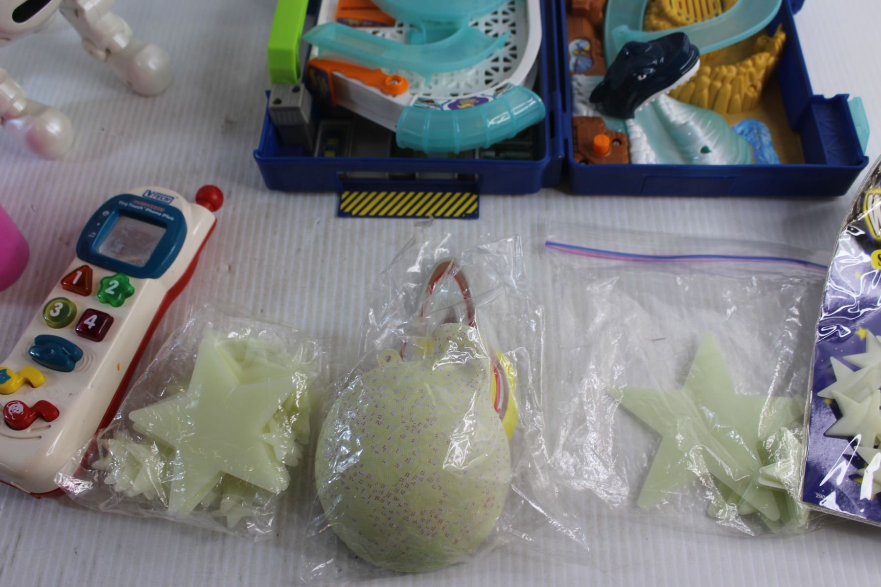 Action Dog Toy, VTech Tiny Touch Phone, Glow in the Dark Stars, Disney Watering Can and Hot Wheels Race Track Toy