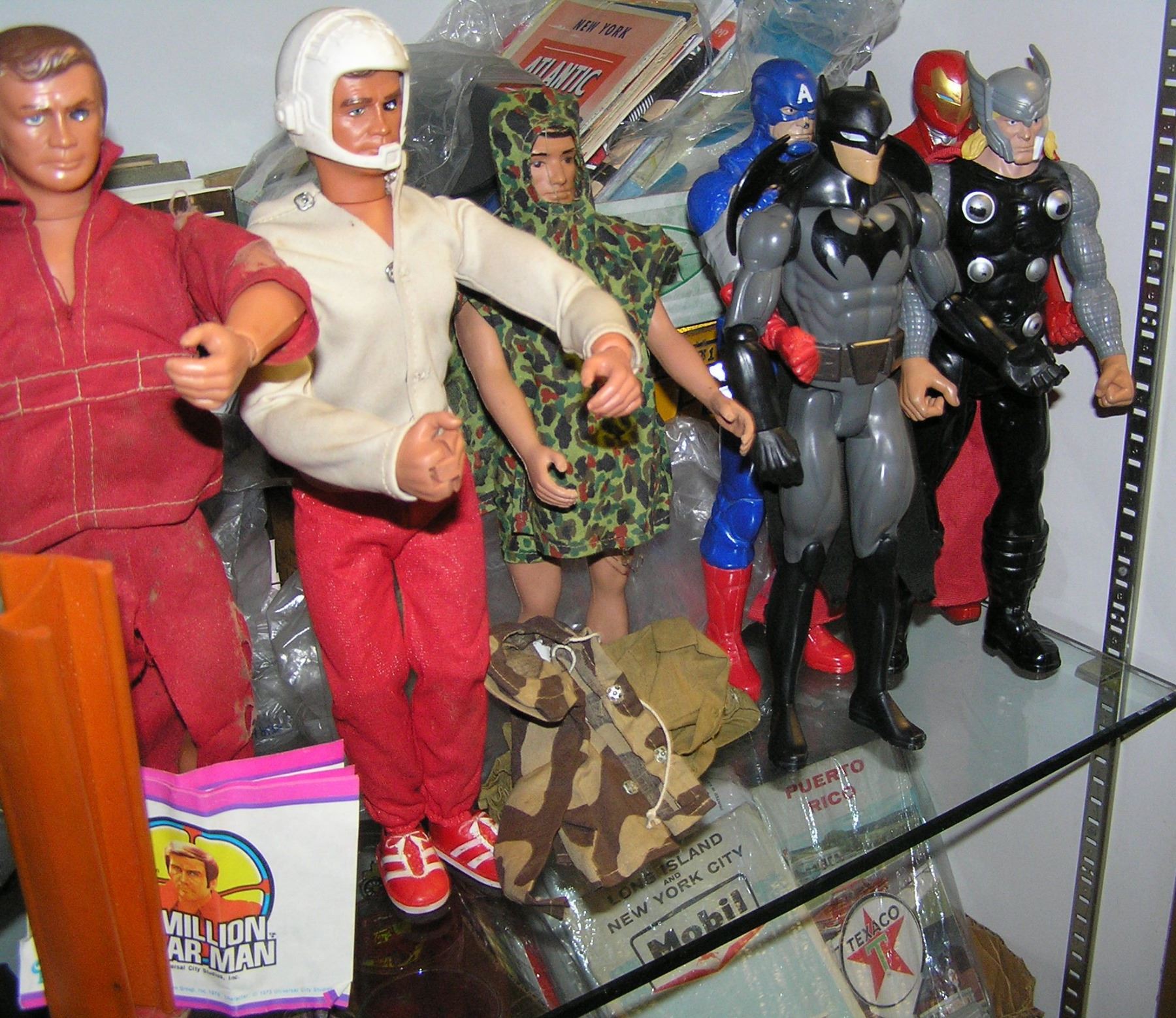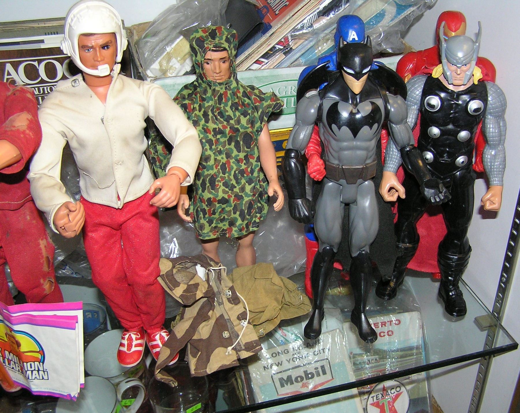 Action figure collection includes GI Joe, 6 million dollar man, Maskatron, super heros, villians and more 13 pieces totalmost are 12 inch action figures piece est. $800.00-$900.00