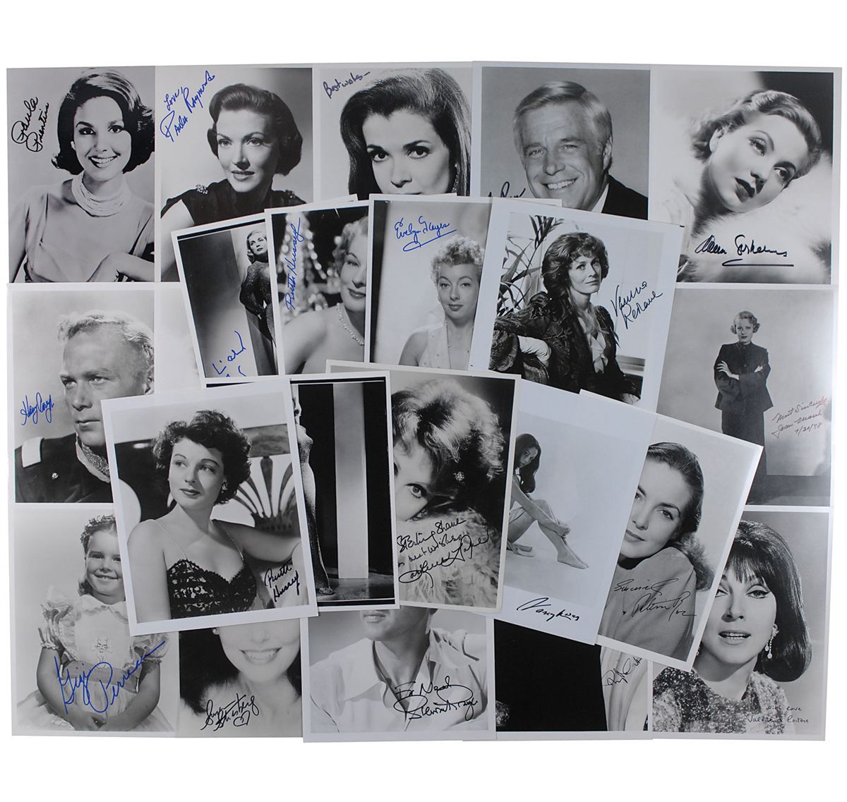 Collection of 24 signed 8 x 10 photos, various finishes, each signed in ink or felt tip by the actor or actress pictured. Signers are: Vanessa Redgrave, Lizabeth Scott (2), Ruth Hussey (2), Evelyn Keyes, Valentina Cortese, Anne Jeffries, Joan Marsh, Frances Sternhagen, Gigi Perreau, Harry Carey, Jr., Ann Sothern (2), George Peppard (ins), Stewart Granger (ins), Jessica Walter, Paula Raymond, Paula Prentiss, Susan Strasberg, Arlene Dahl, Phyllis Calvert, Nancy Kwan, and one other. In overall fine condition.