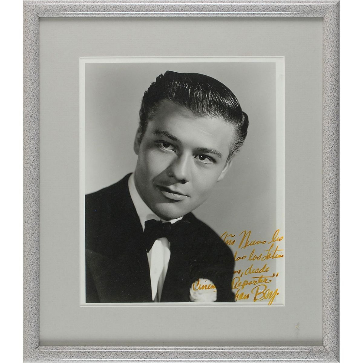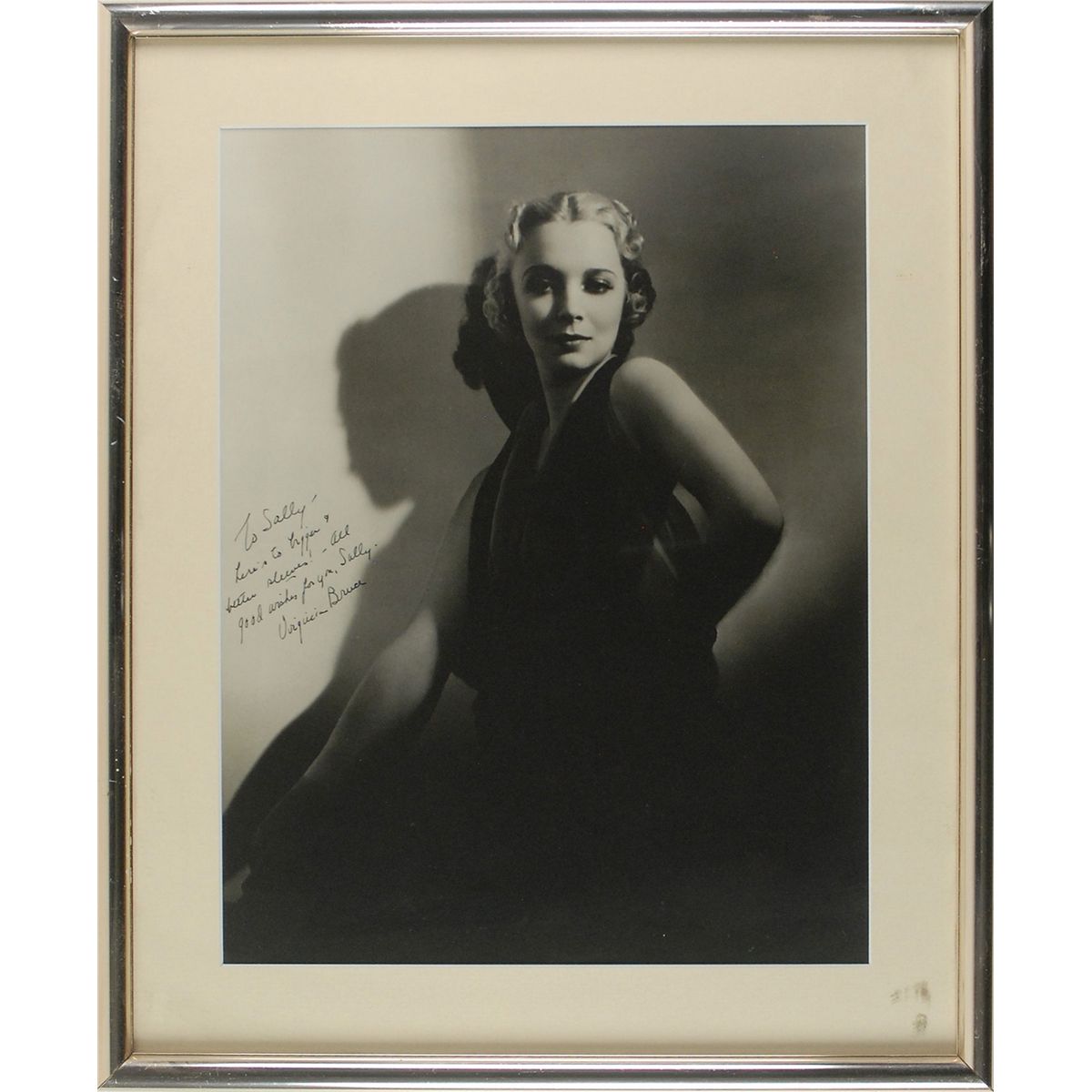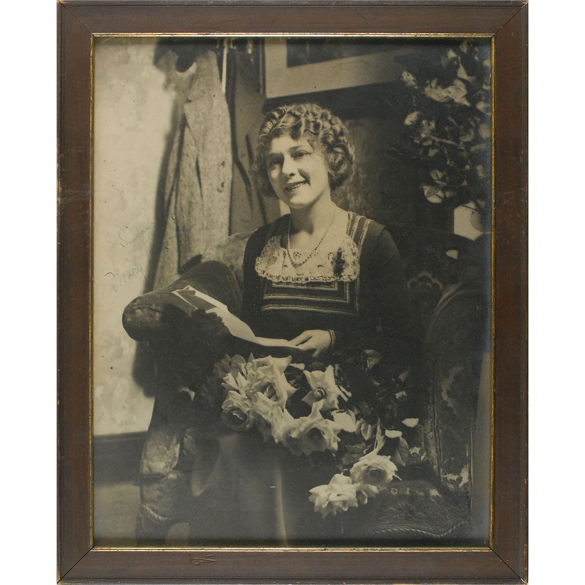 Collection of four photos, each signed by the actor or actress pictured, including: Mary Pickford, Virginia Bruce (ins), Turhan Bey (ins), and Wendy Barrie (ins). All but Bey are oversized, and each is matted and framed to an overall size of 15 x 18 or smaller. In overall very good to fine condition.