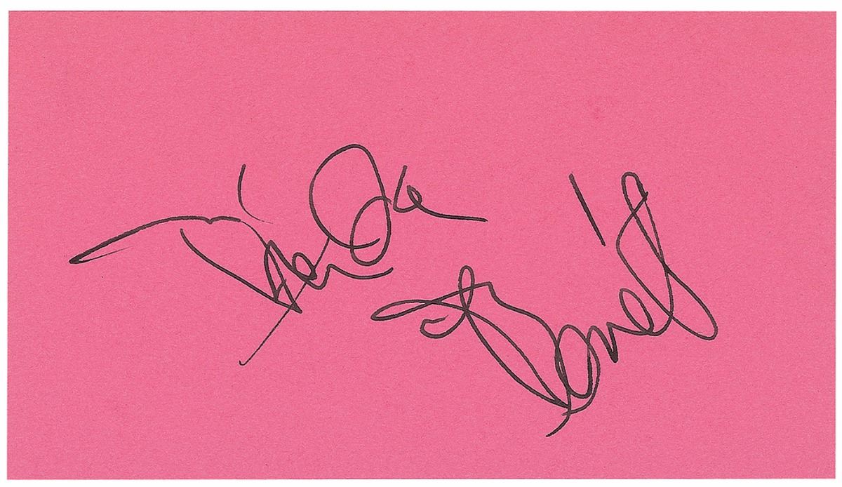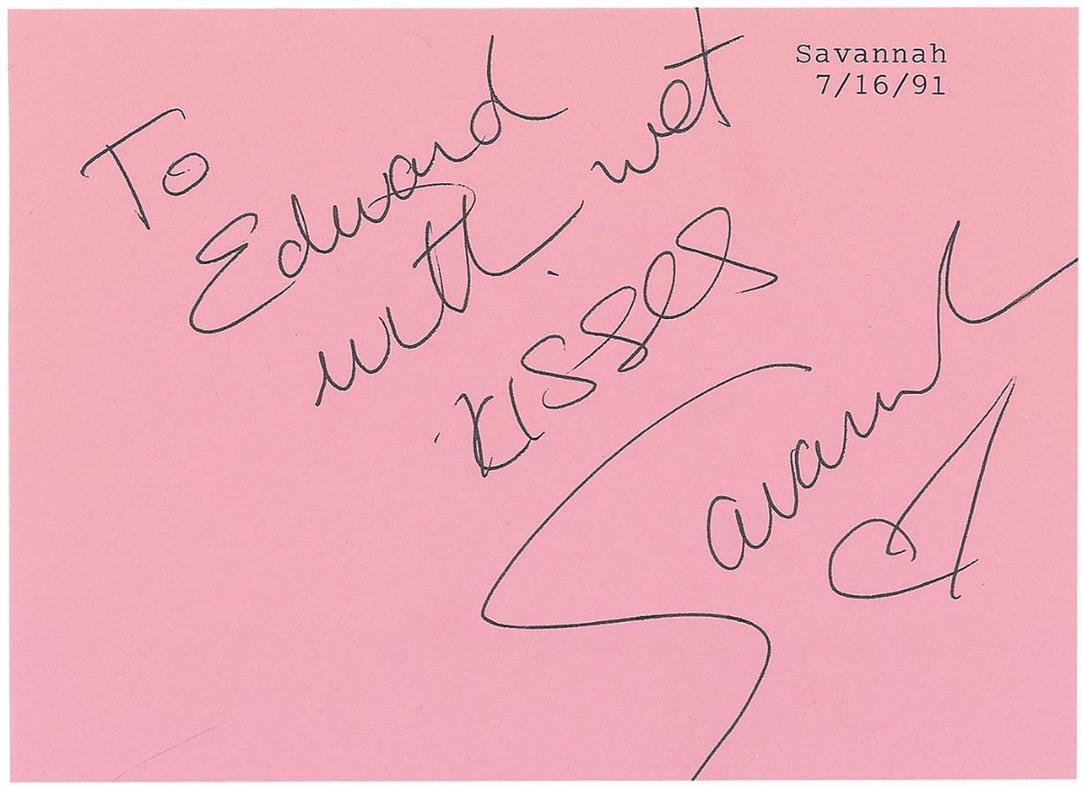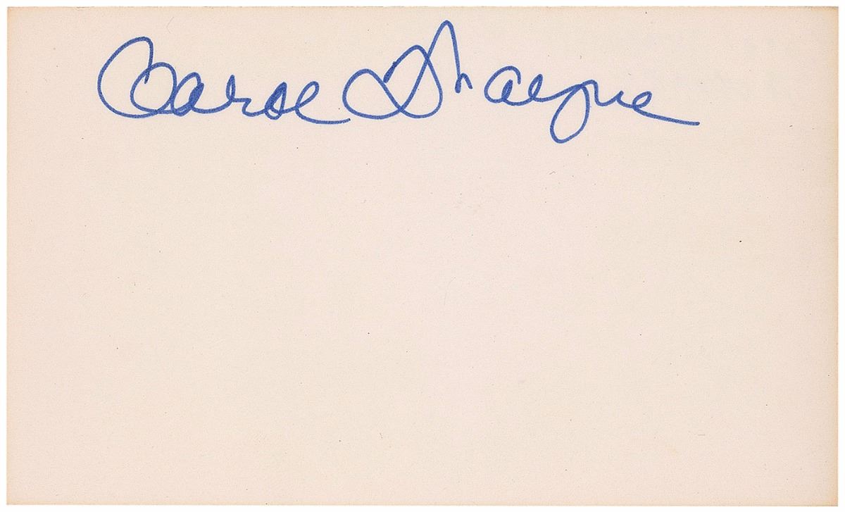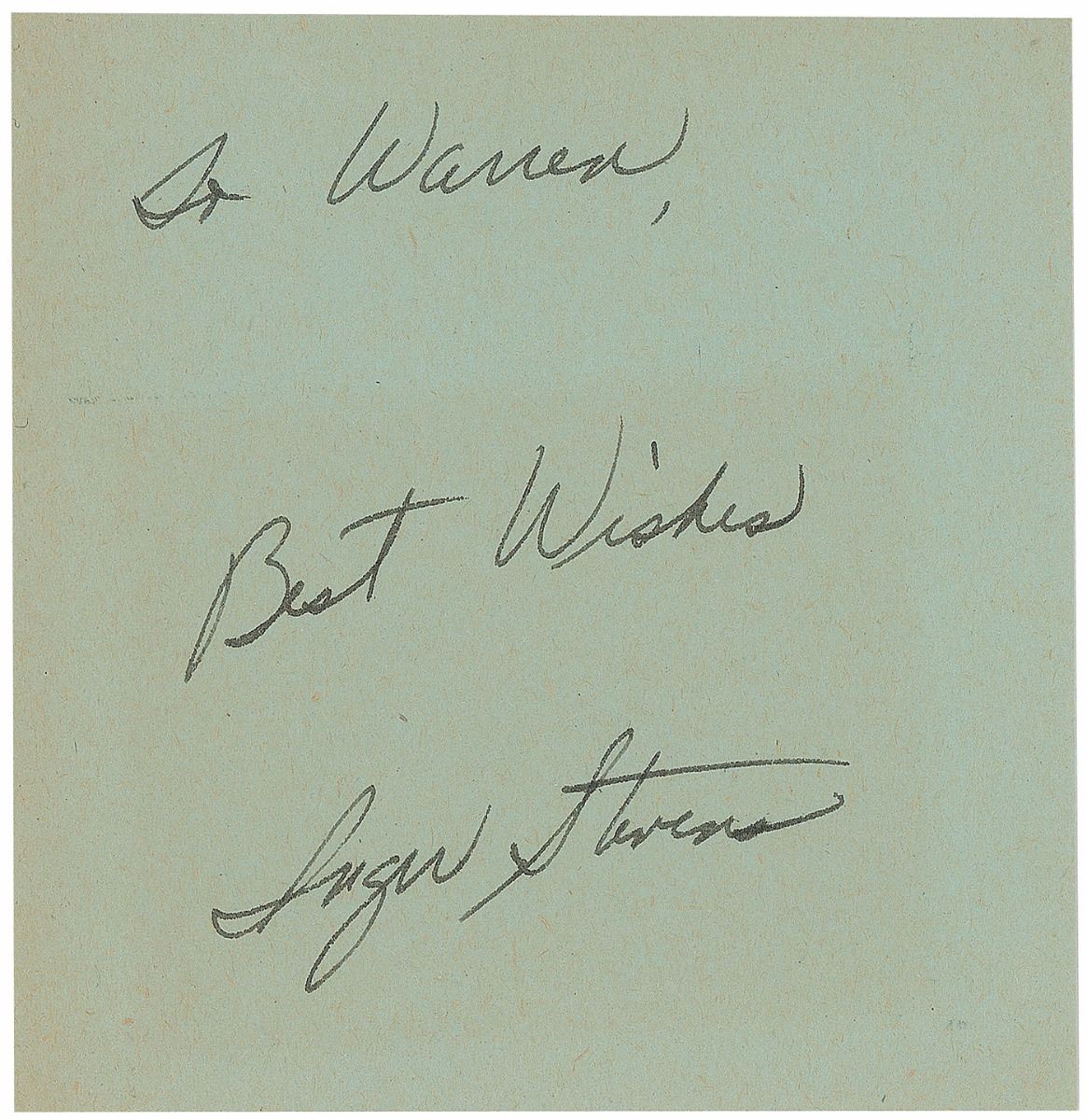Set of four ink signatures on individual clipped slips and cards, including: Brenda Benet, Savannah (ins), Inger Stevens (ins), and Carol Wayne. In overall fine condition, with a light irregular box of toning to the Stevens, and typed collector’s notations to the Savannah. A desirable cast of actresses whose careers were tragically cut short.