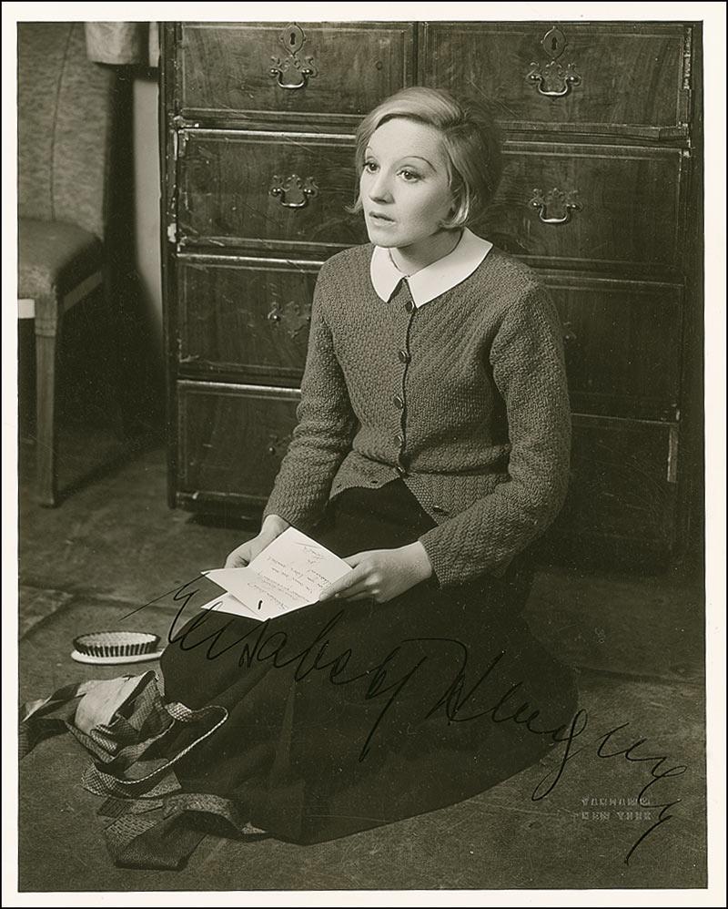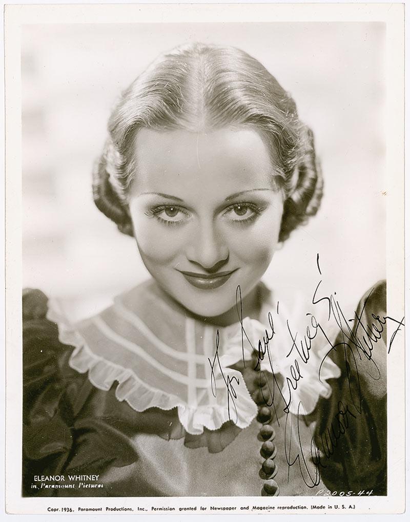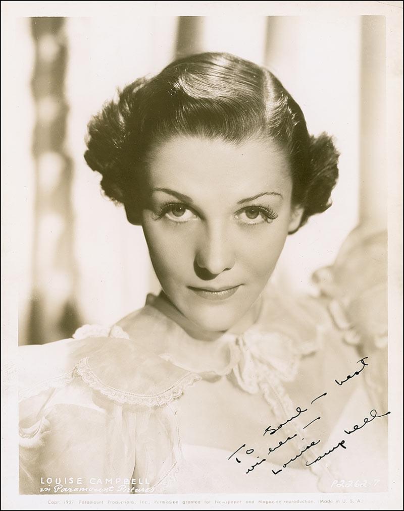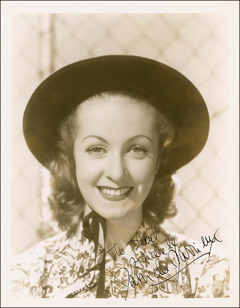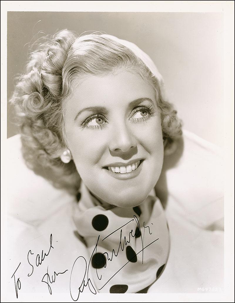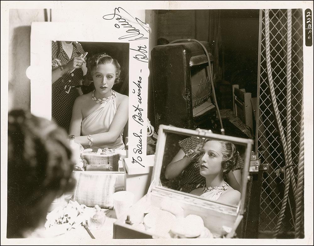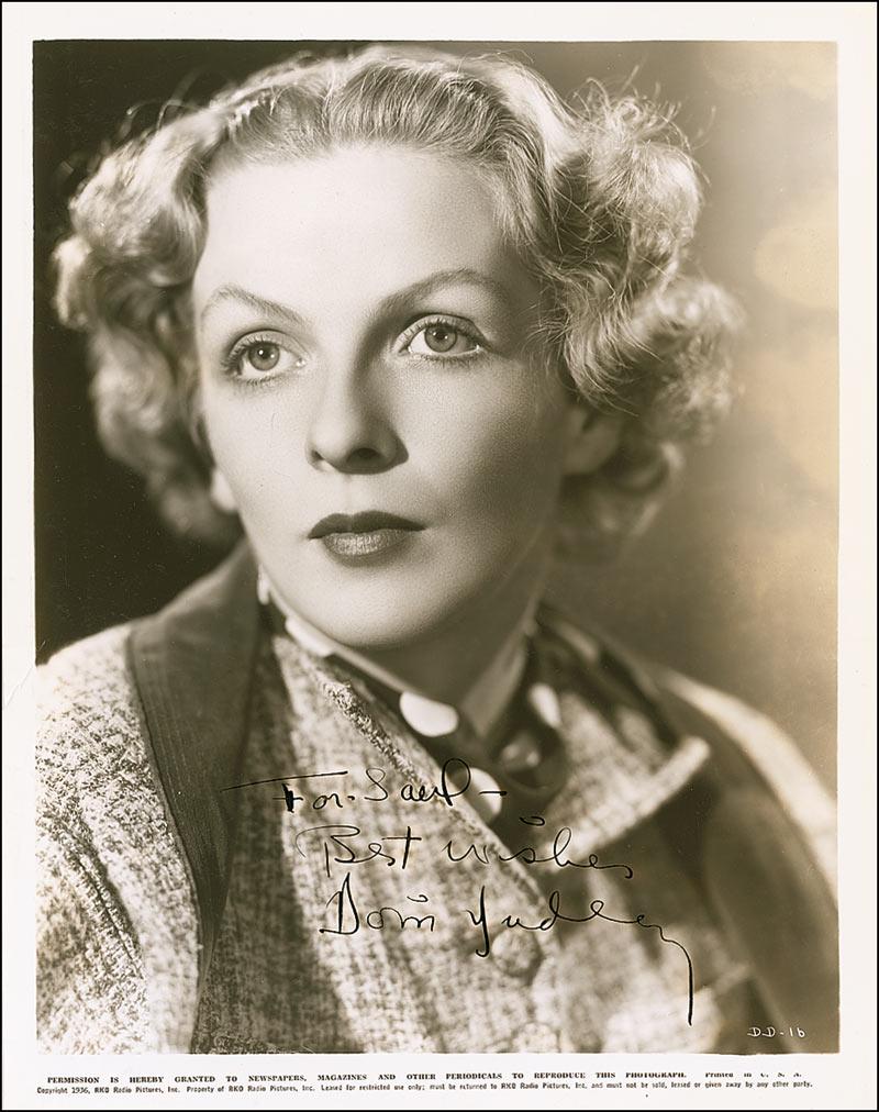 Twelve vintage photos, eleven 8 x 10 and one 10 x 8, with glossy, matte, and double weight pearl-finish, each signed and inscribed in-person in fountain pen by the respective actress pictured. Signers are: Benita Colman Elisabeth Bergner (Vandamm), Grace Barrie, Sally Eilers, Bebe Daniels, Peggy Conklin, Cicely Courtneidge, Louise Campbell, Danielle Darrieux, Jean Dixon, Doris Dudley, and Eleanor Whitney. Reverse of each photo bears collector’s stamp indicating the date the signature was acquired. In very good to fine overall condition. The Saul Goodman collection.