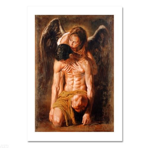 With a style that is reminiscent of the frescoes of Michelangelo and Caravaggio, Tomasz Rut creates breathtaking works of art that capture the beauty of the human form. "Ad Ascendo" is a limited edition giclee on canvas, numbered and hand signed by Rut. Includes Certificate of Authenticity! Measure approx. 22" x 32" (image).